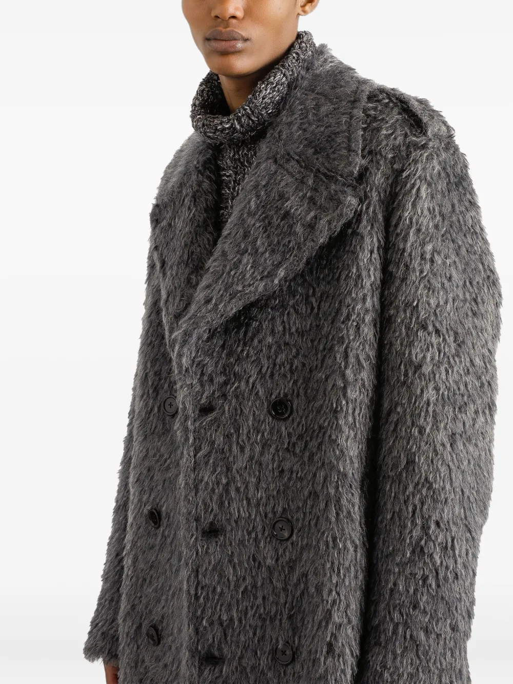 Фактурное двубортное пальто Dolce & Gabbana, серый
