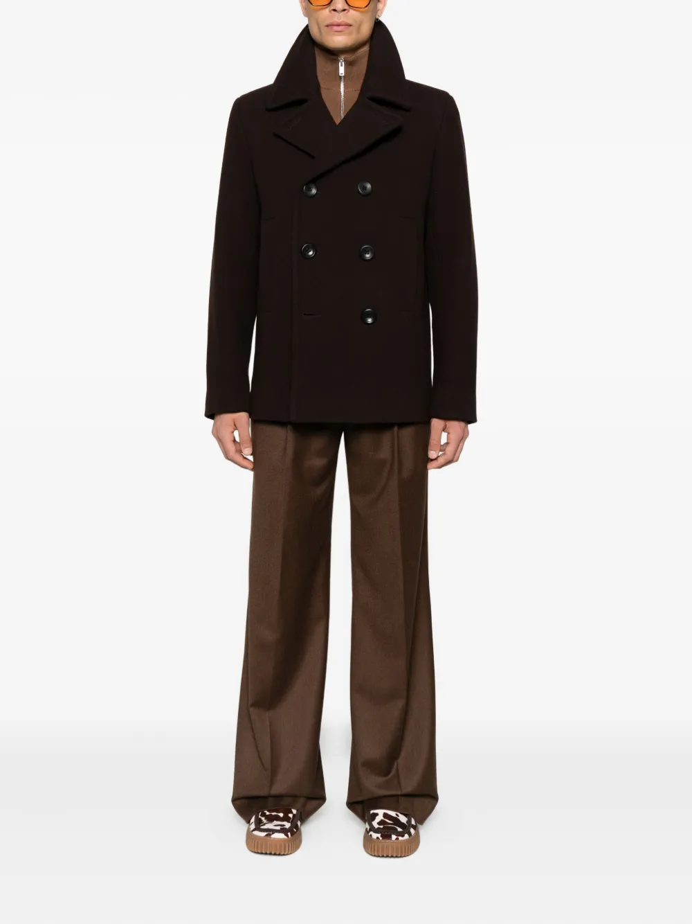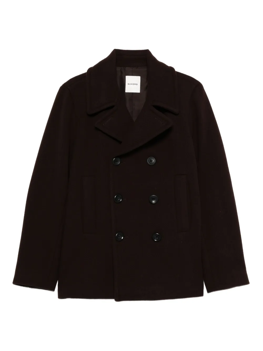 Двубортный шерстяной бушлат Sandro, коричневый