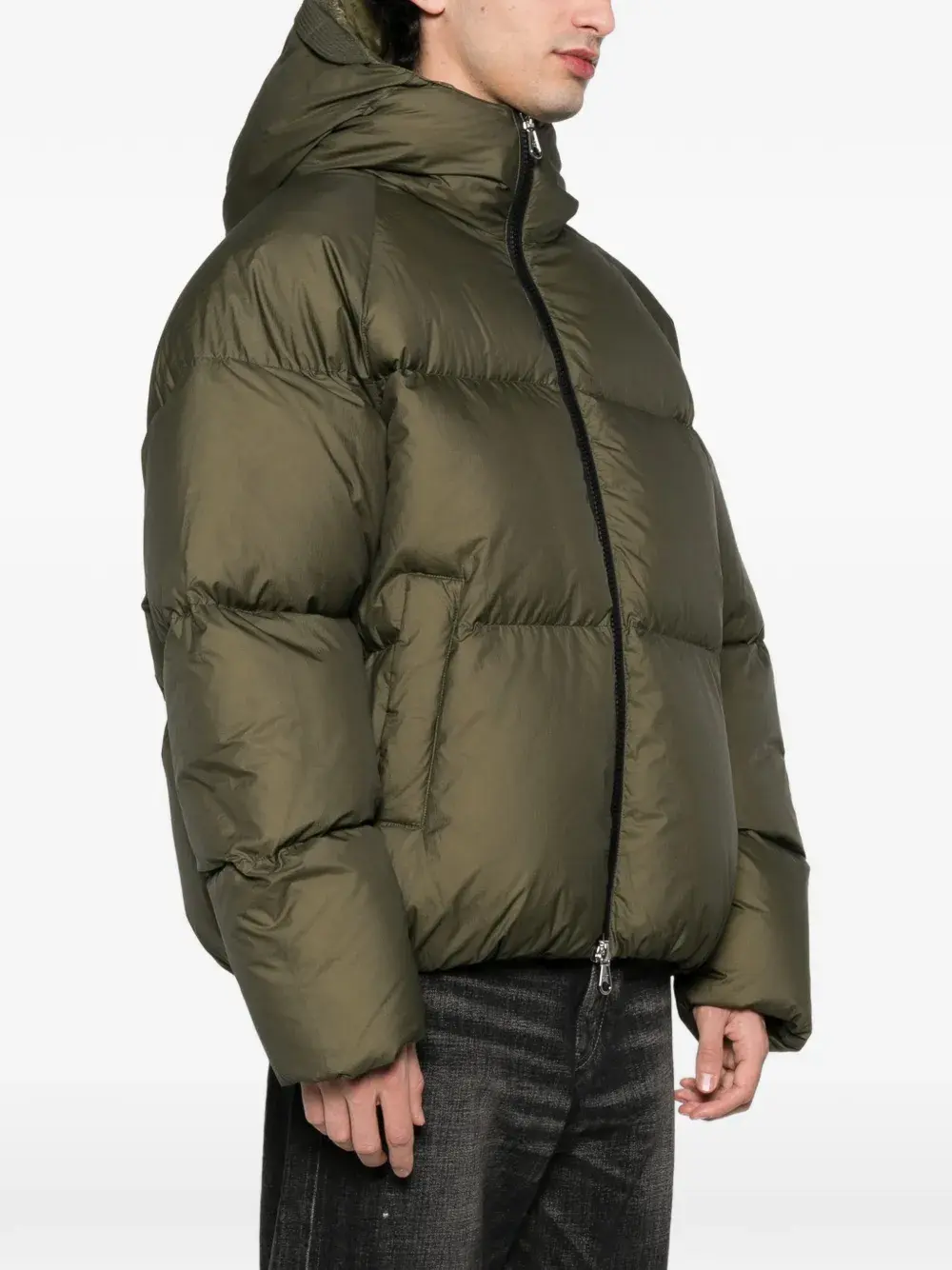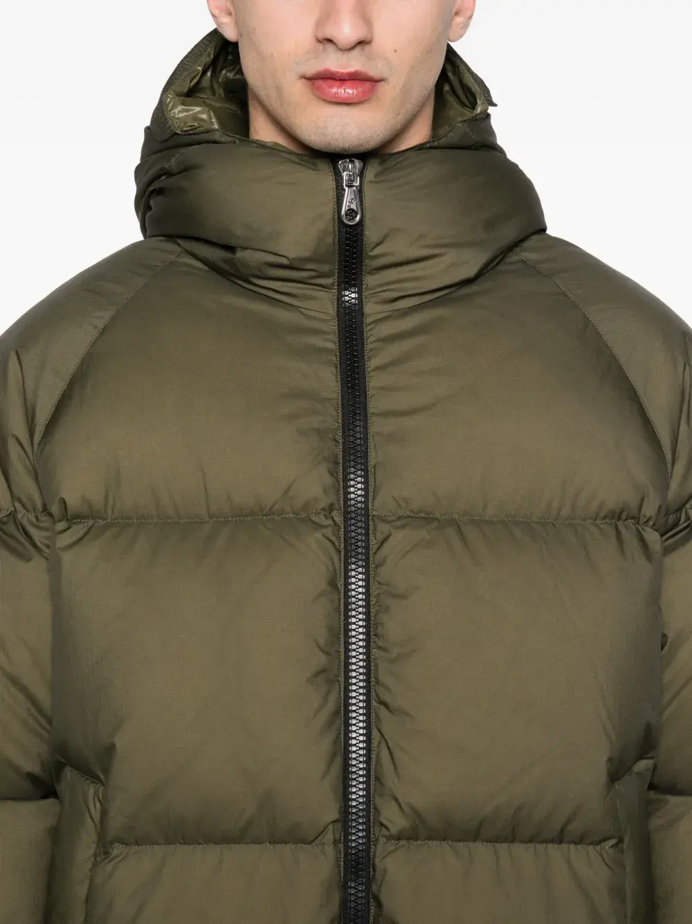 Оливково-зеленый с капюшоном, застежка-молния спереди, передние карманы, стеганый дизайн, длинные рукава