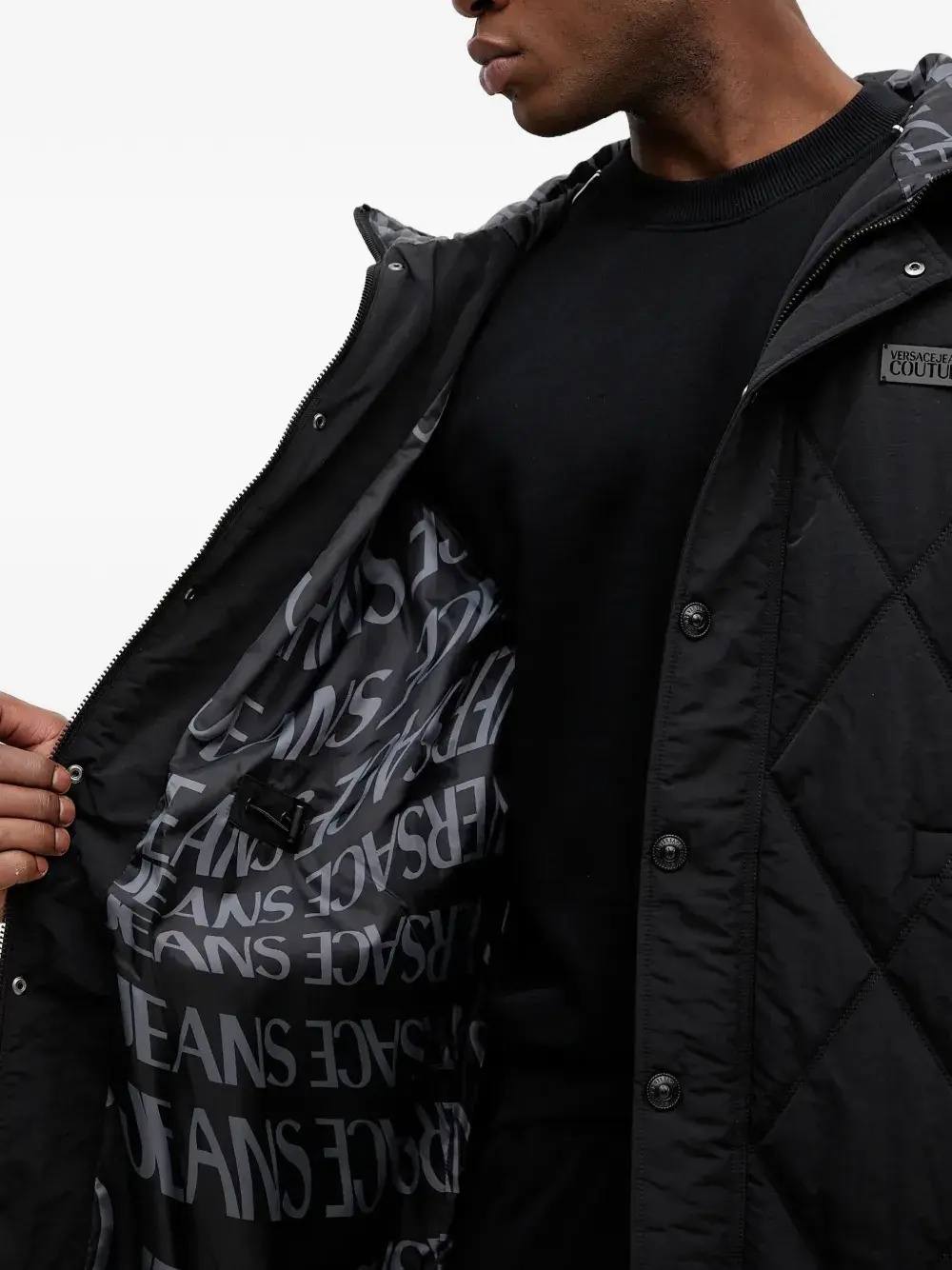 Пуховик с капюшоном Versace Jeans Couture, черный