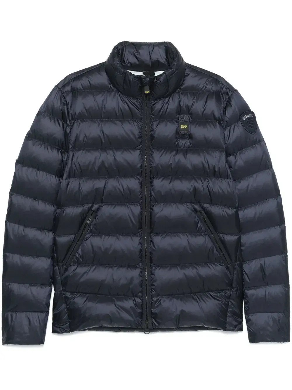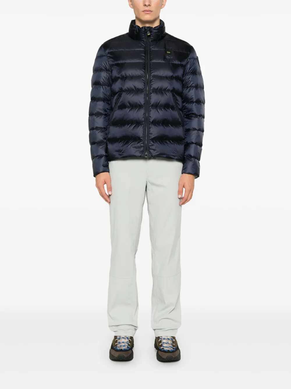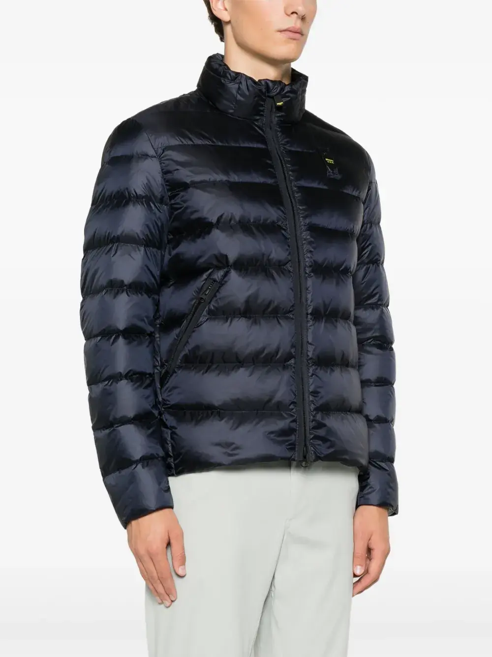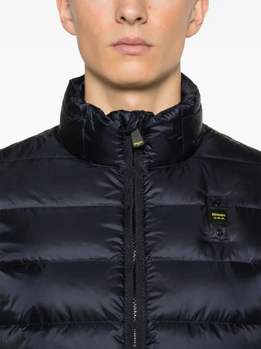 Подробнее о товаре: - темно-синий - утиный пух - дутый материал - стеганная модель - двусторонняя молния спереди - воротник-стойка - длинные рукава - нашивка с логотипом на рукаве - маленькая подвеска с логотипом - карманы на молнии спереди - контрастная подкладка - внутренний карман на молнии - внутренний накладной карман - резинки с застежкой тогл внутри - прямой подол