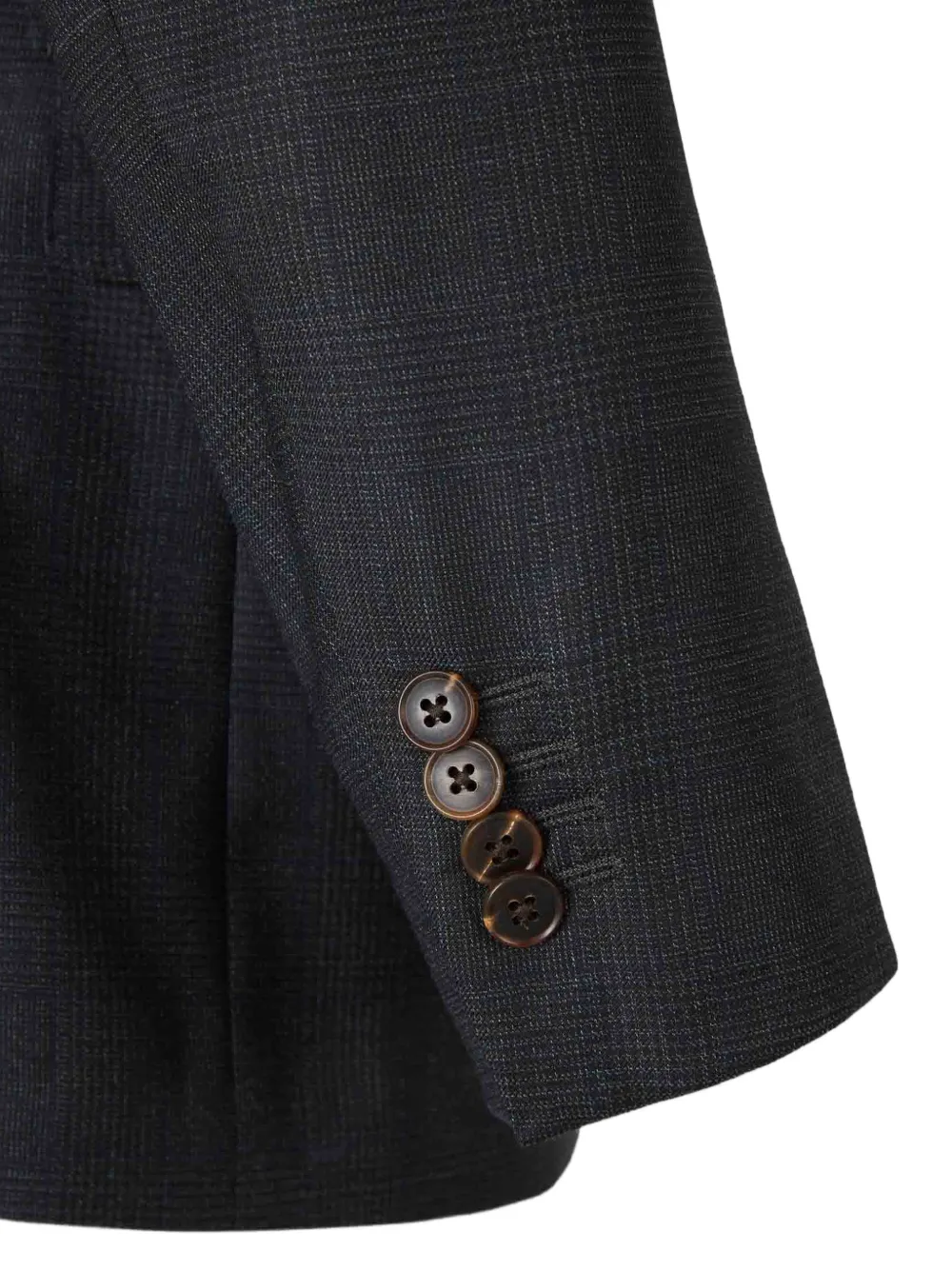 Синий, застежка на две пуговицы, боковые карманы, манжеты на пуговицах, классические лацканы, аккуратная строчка