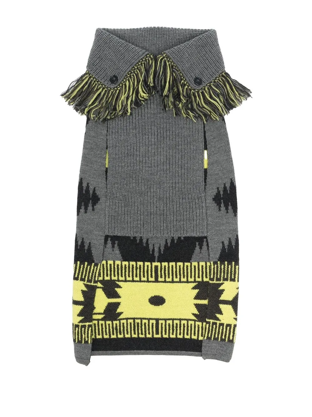 Темно-серый, желтый, эластичная шерсть, трикотажный материал, модель без застежки и бахрома.