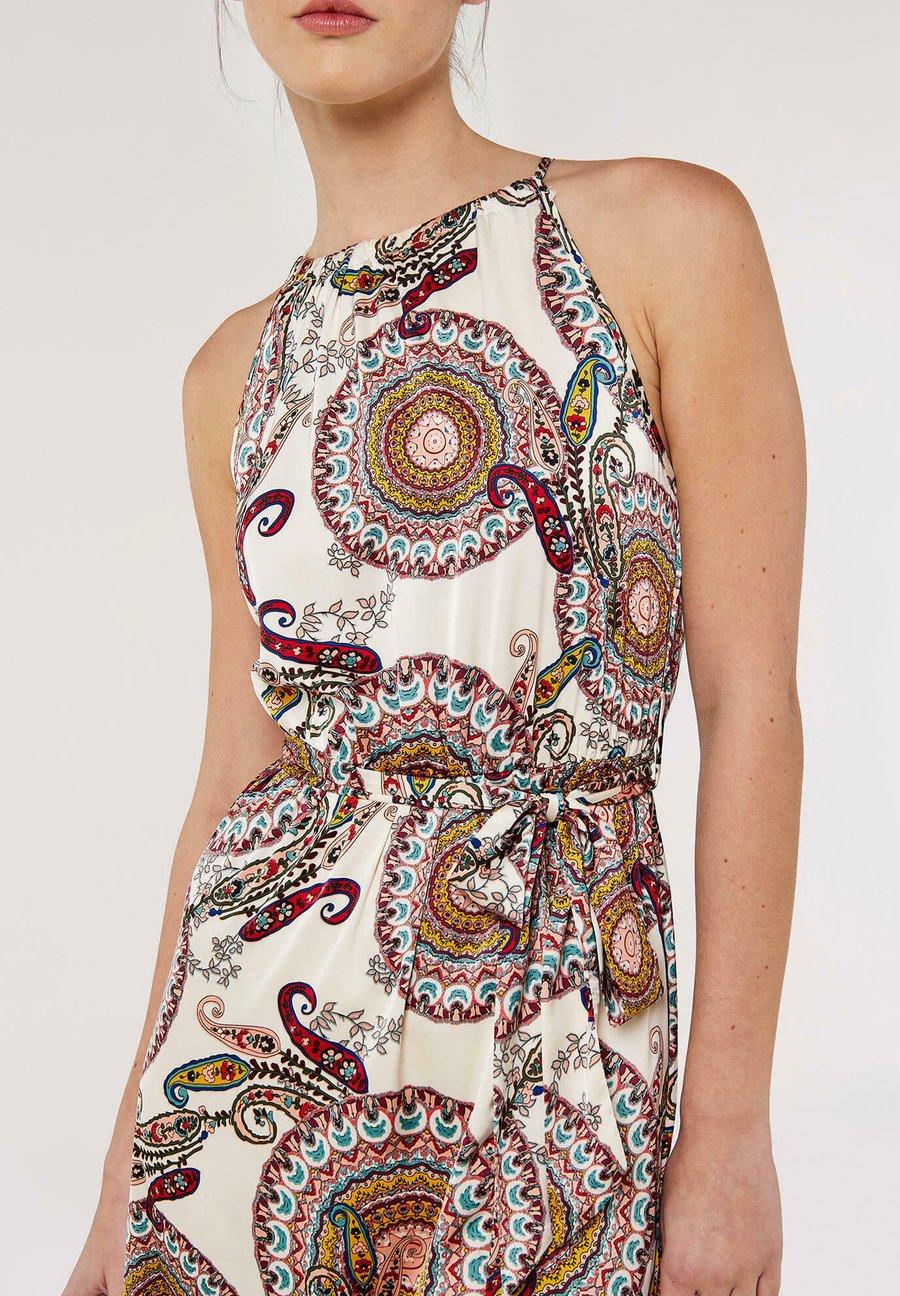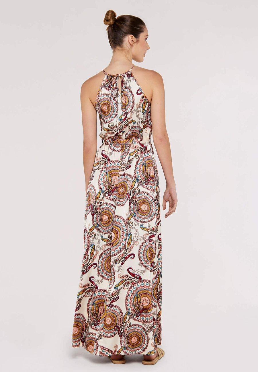 Выйди в центр внимания с нашим макси-платьем из атласа с воротником-халтером и узором пейсли - где вневременная элегантность сочетается с современным стилем. Изготовленное из блестящей атласной ткани, которая переливается на свету при каждом движении, это платье украшено смелым принтом пейсли, который добавляет нотку винтажного очарования. Воротник-халтер выгодно подчеркивает плечи и красиво обрамляет лицо, а струящаяся длина макси придает драматизм и изящество каждому вашему шагу. Идеально подходит для свадеб, вечерних выходов или любого момента, когда хочется добавить немного блеска. Вырез: Открытая спинаМатериал и уход
