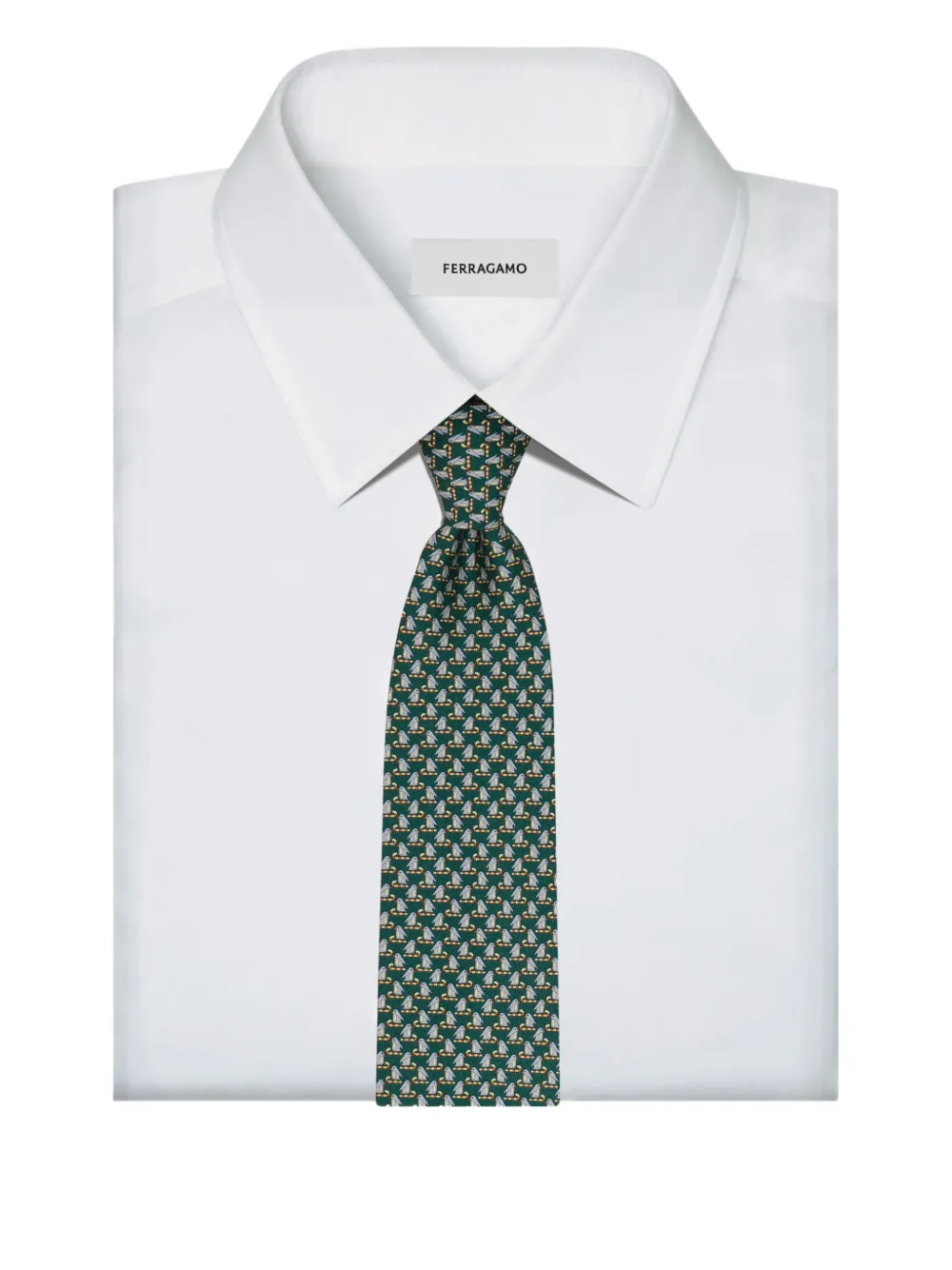 Шелковый галстук с принтом Ferragamo, зеленый 30 154₽
