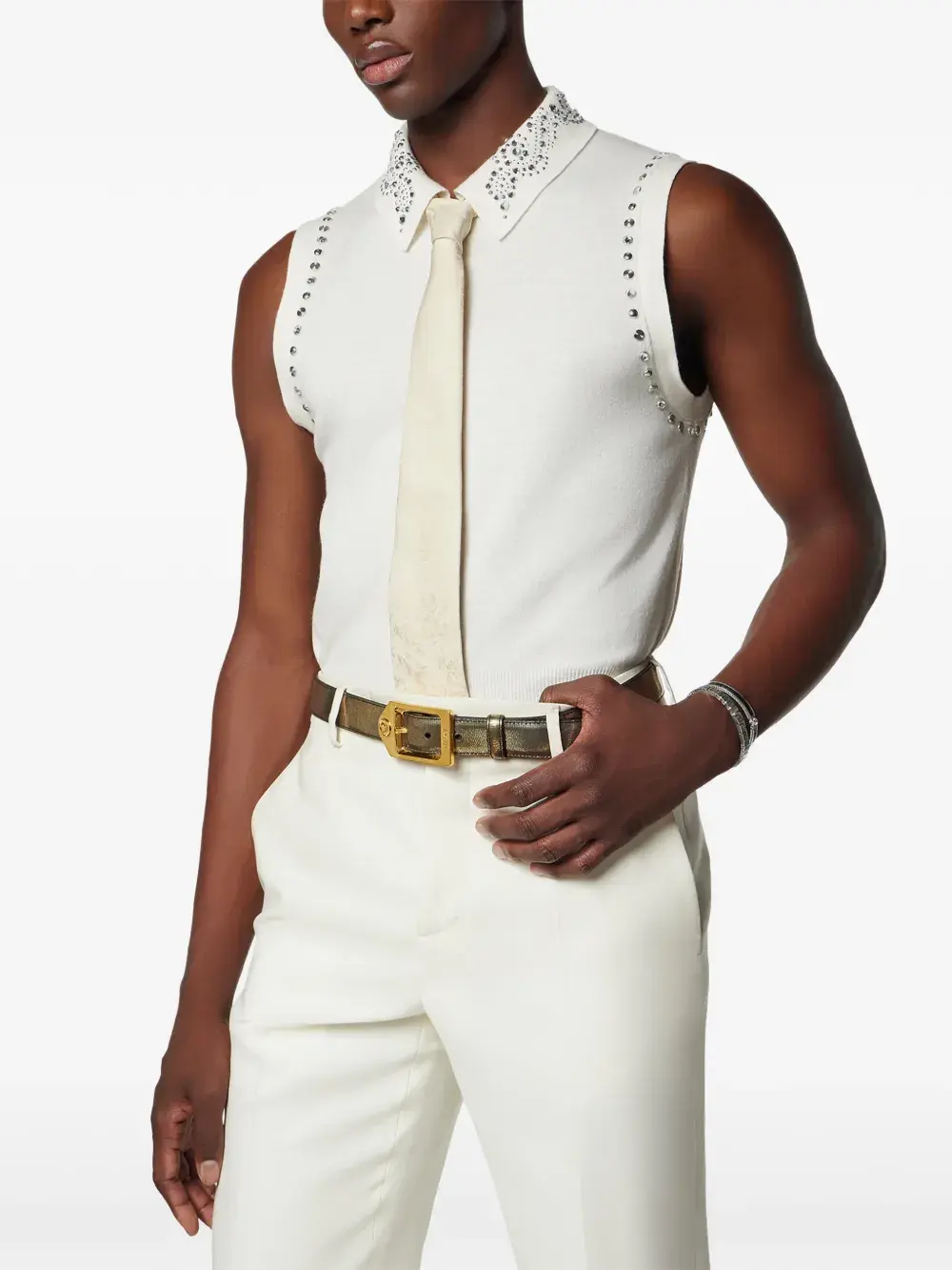 Шелковый галстук с принтом Barocco Versace, белый 27 177₽