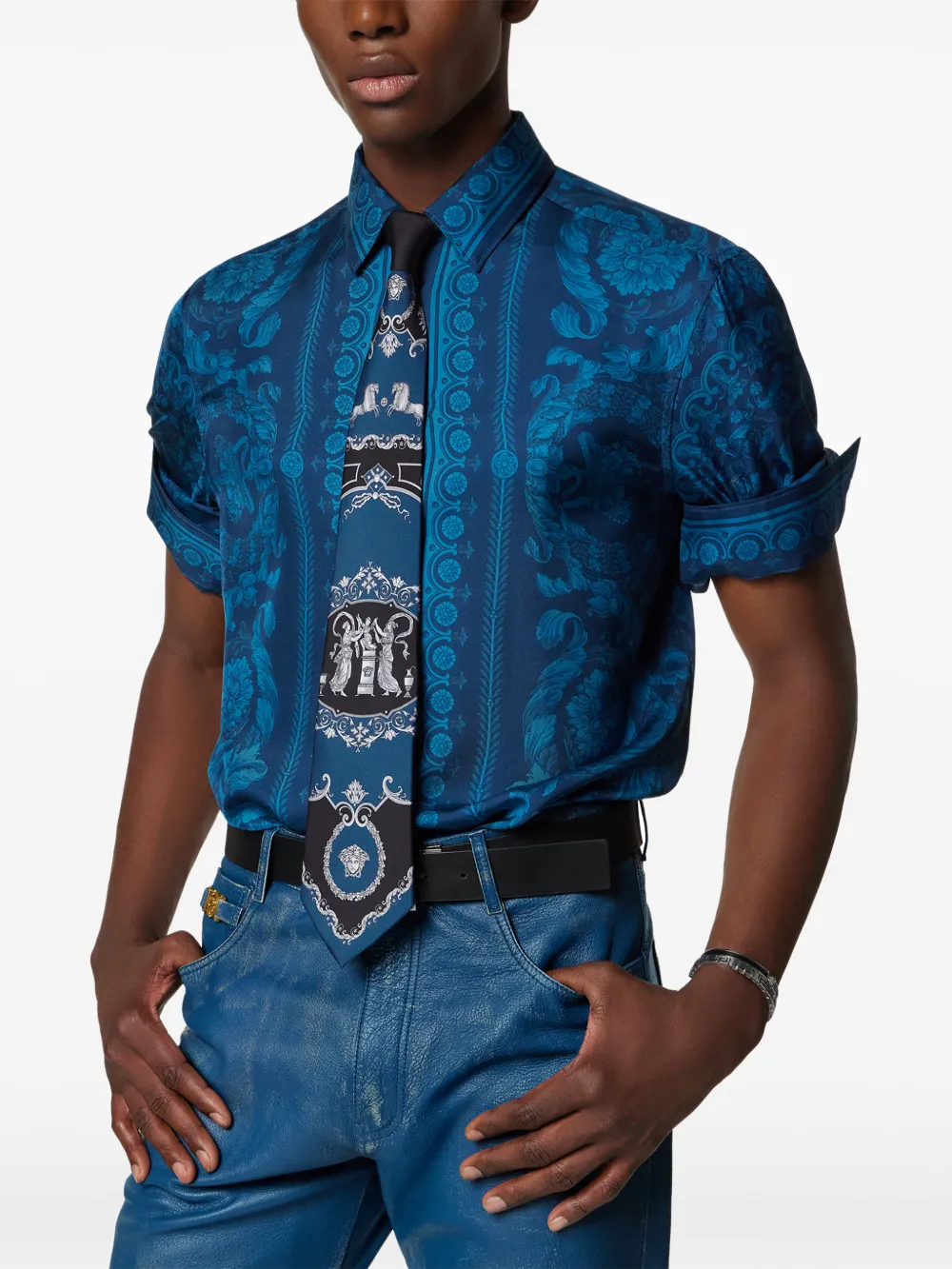 Шелковый галстук с принтом Versace, синий 28 145₽
