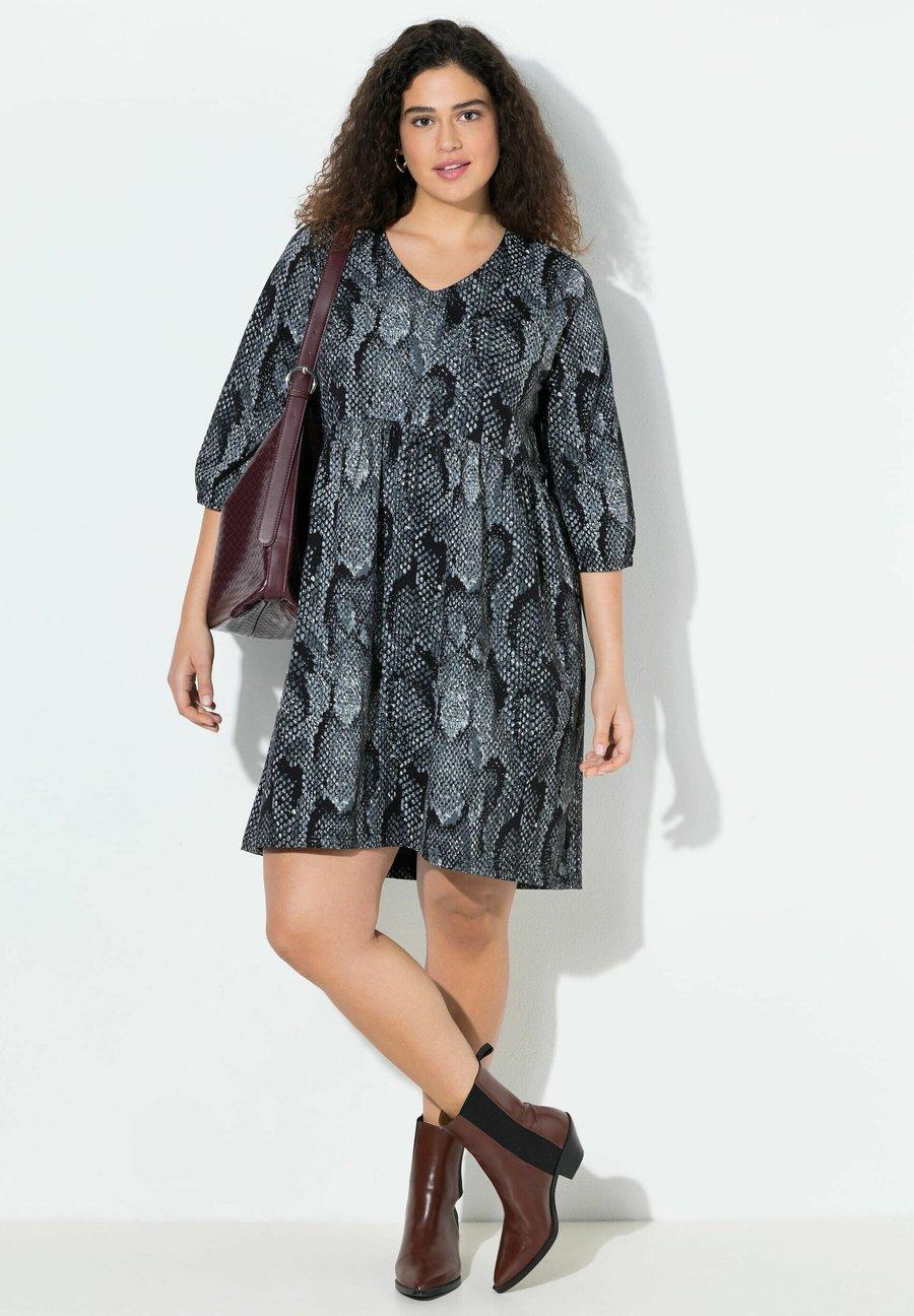 Платье Ulla Popken Jersey dress, Classic Black/Mottled Anthracite