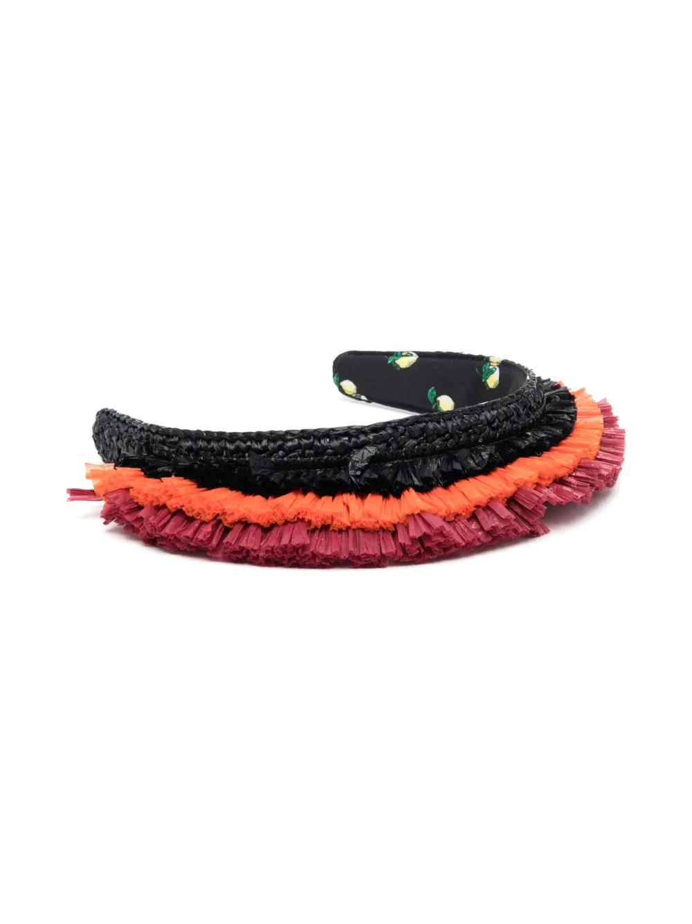 Черный/разноцветный, принт с изображением фруктов, многослойный дизайн, бахрома и модель без застежки.
