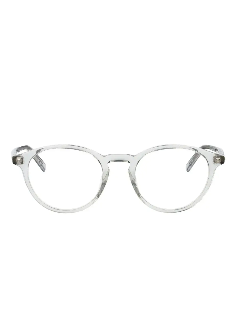 Светло-серые круглые оправы, логотип, прямые заушники. Очки поставляются с защитным футляром. Все очки на FARFETCH продаются как оправы без диоптрий.