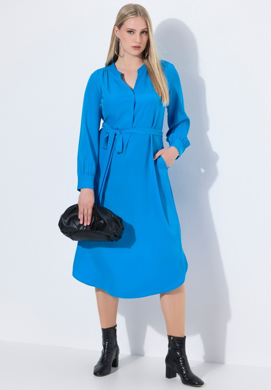 Платье Ulla Popken BELTED LONG SLEEVE MIDI, Royal Blue