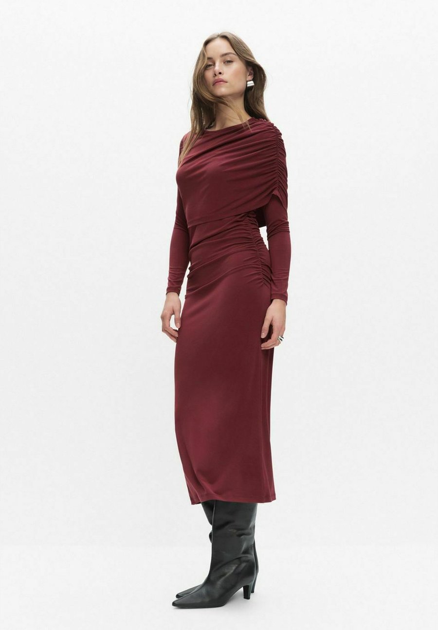 Платье Nikki от Stockh lm Studio - облегающее платье из эластичного трикотажа с асимметричной драпировкой на плече, круглым вырезом и длинными рукавами. Элегантный стиль, доступно в двух цветах. Вырез: КруглыйМатериал и уход