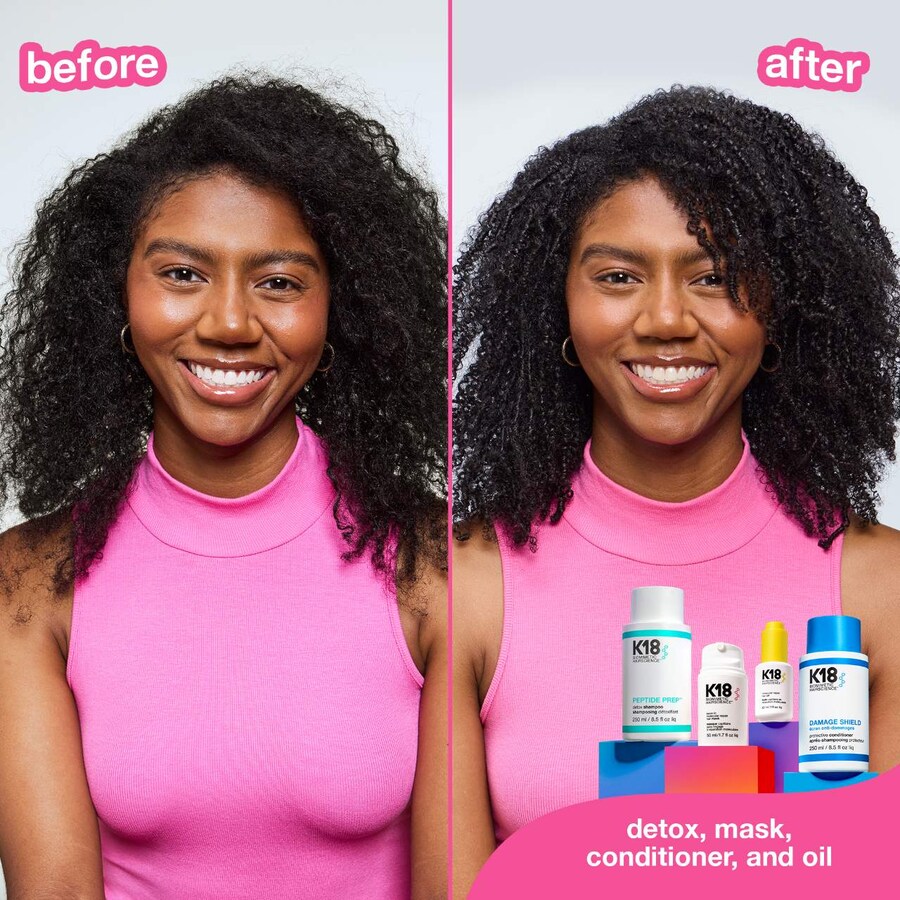 -Для достижения наилучших результатов в восстановлении и предотвращении повреждений: используйте детокс-шампунь + несмываемую маску K18 molecular repair (продается отдельно) еженедельно для восстановления повреждений, а в дни без маски используйте шампунь DAMAGE SHIELD (продается отдельно) и кондиционер, чтобы предотвратить дальнейшее повреждение.