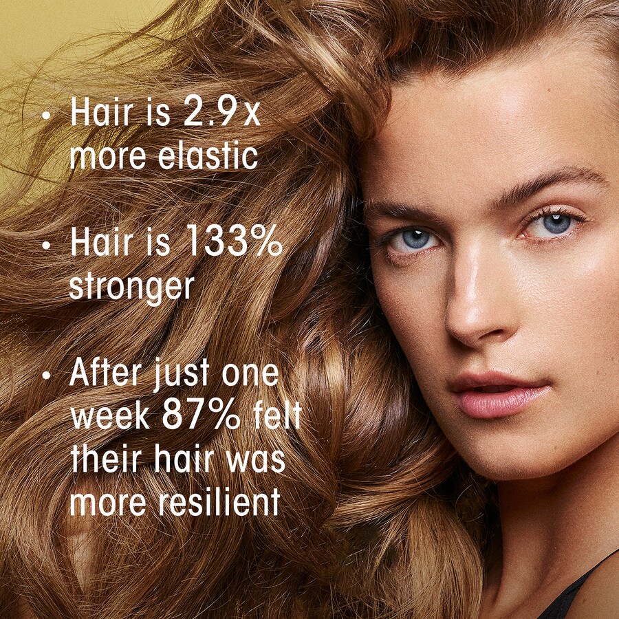 Penetrates the hair cortex to build strength from within while forming a protective scaffold around strands to reinforce cuticle strength and structure, as well as prevents breakage caused by brushing, styling, and external aggressors.