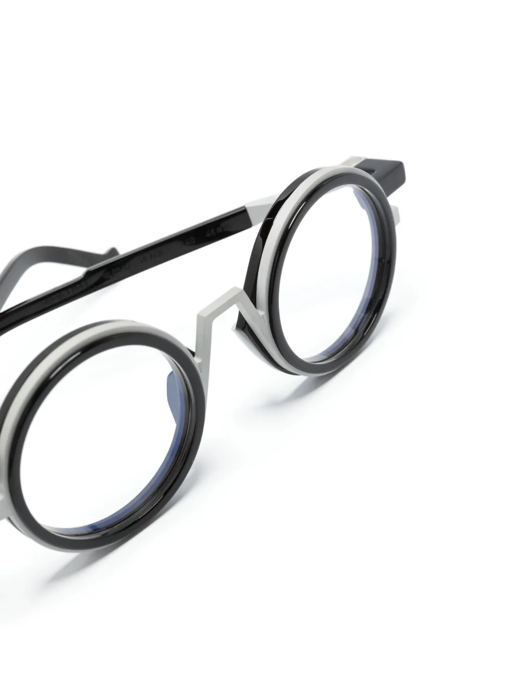 Черный, ацетат, круглая оправа, прозрачные линзы, прямые дужки и дужки с закругленными концами. Обратите внимание, что на FARFETCH продаются оправы с линзами без диоптрий. В комплект входит защитный чехол для очков.