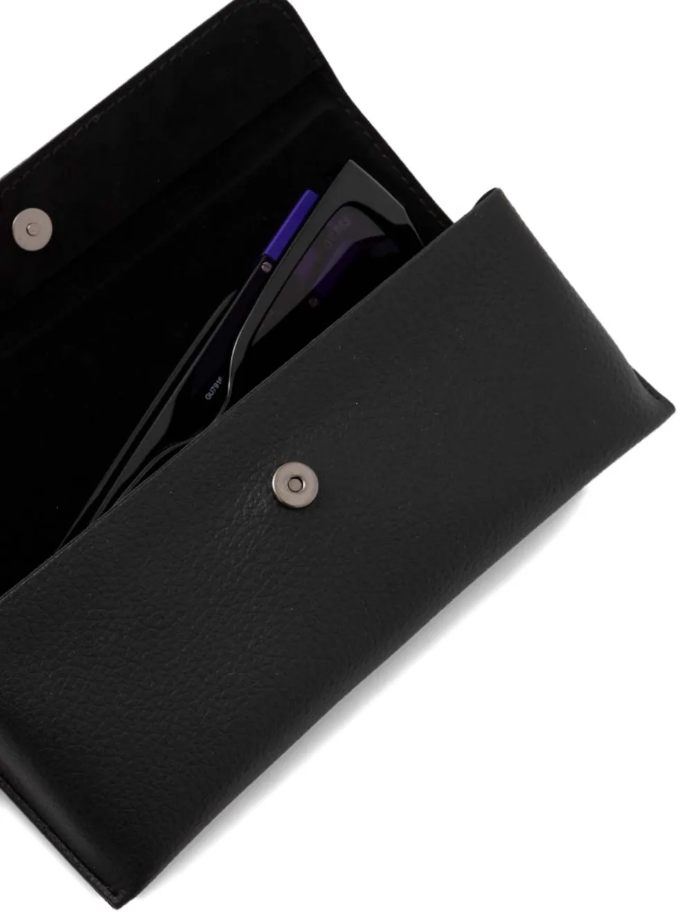 Черная оправа квадратной формы, тонированные линзы, логотип, носовые упоры, прямые заушники. Очки поставляются в защитном футляре.