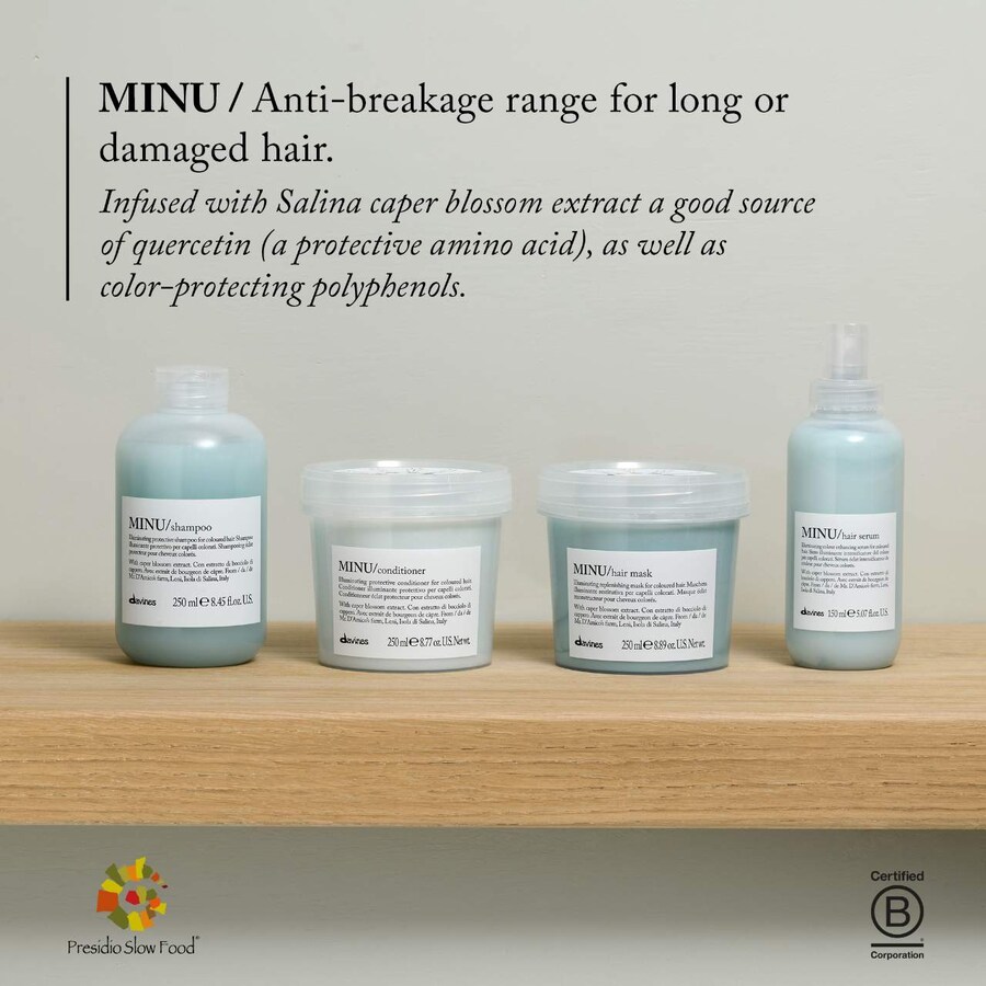 -После смывания шампуня MINU для окрашенных волос (продается отдельно), нанесите небольшое количество кондиционера на длину и кончики.