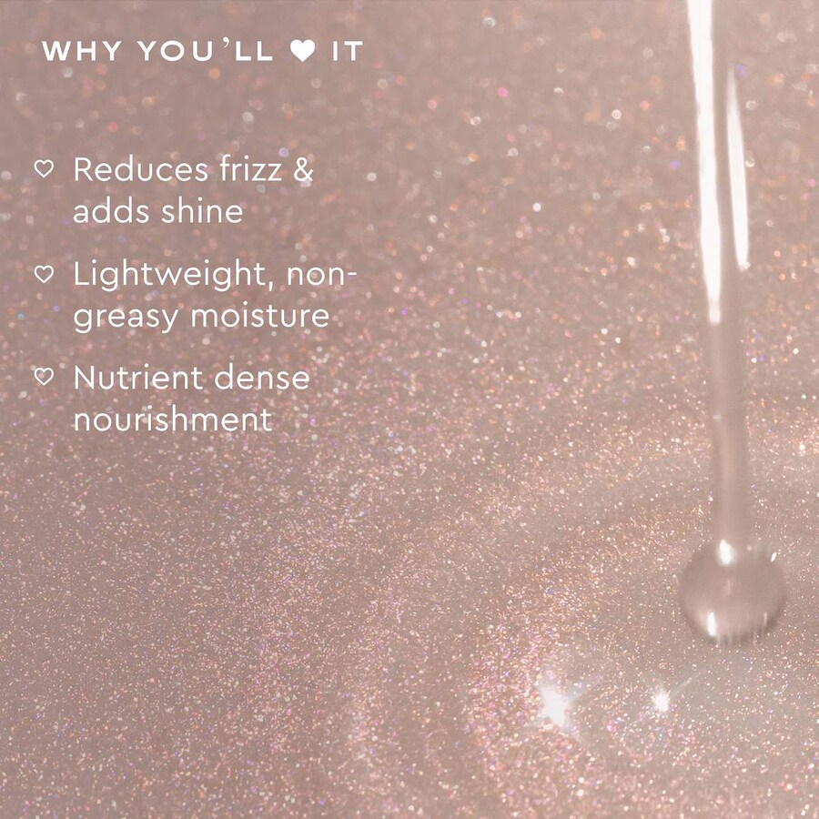 Что это:Невероятно легкое масло для волос, которое контролирует пушистость, увлажняет и придает блеск, обладает легким перламутровым блеском для идеального эффекта нимба. Хорошо встряхнуть перед использованием.