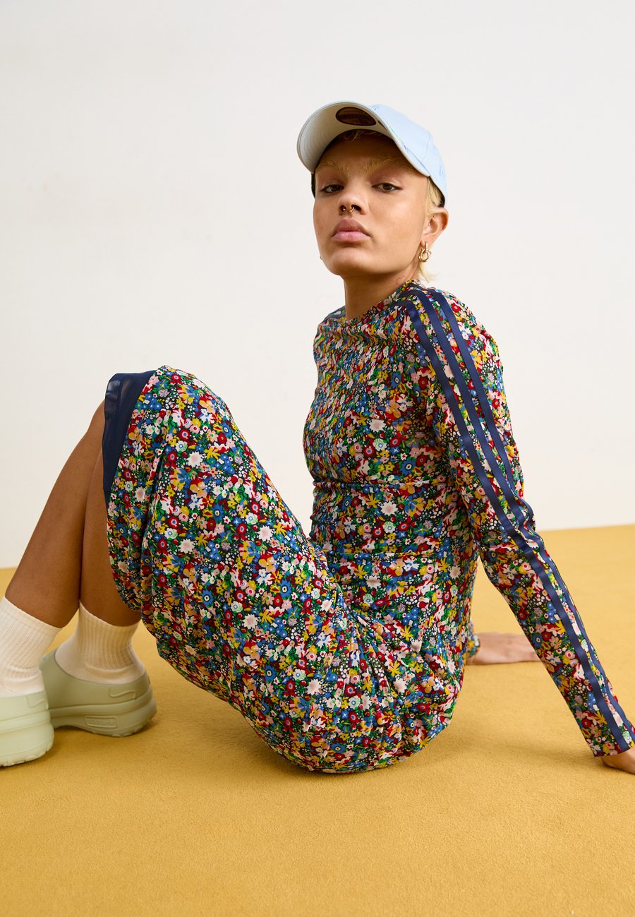 Adidas Originals и Liberty London объединились для создания этого яркого макси-платья из сетчатой ткани. Платье имеет облегающий крой и выполнено из мягкой, эластичной сетчатой ткани, обеспечивающей комфорт в течение всего дня. Высокий воротник-стойка и удлиненный силуэт подчеркивают спортивный, но элегантный стиль от верха до низа. Идеально сочетается с любимыми кроссовками, шлепанцами или мюлями. Вырез: КруглыйМатериал и уход