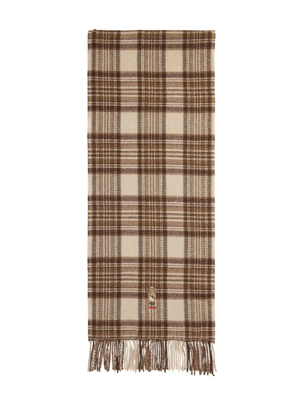 Клетчатый платок с вышивкой Polo Ralph Lauren, кремовый