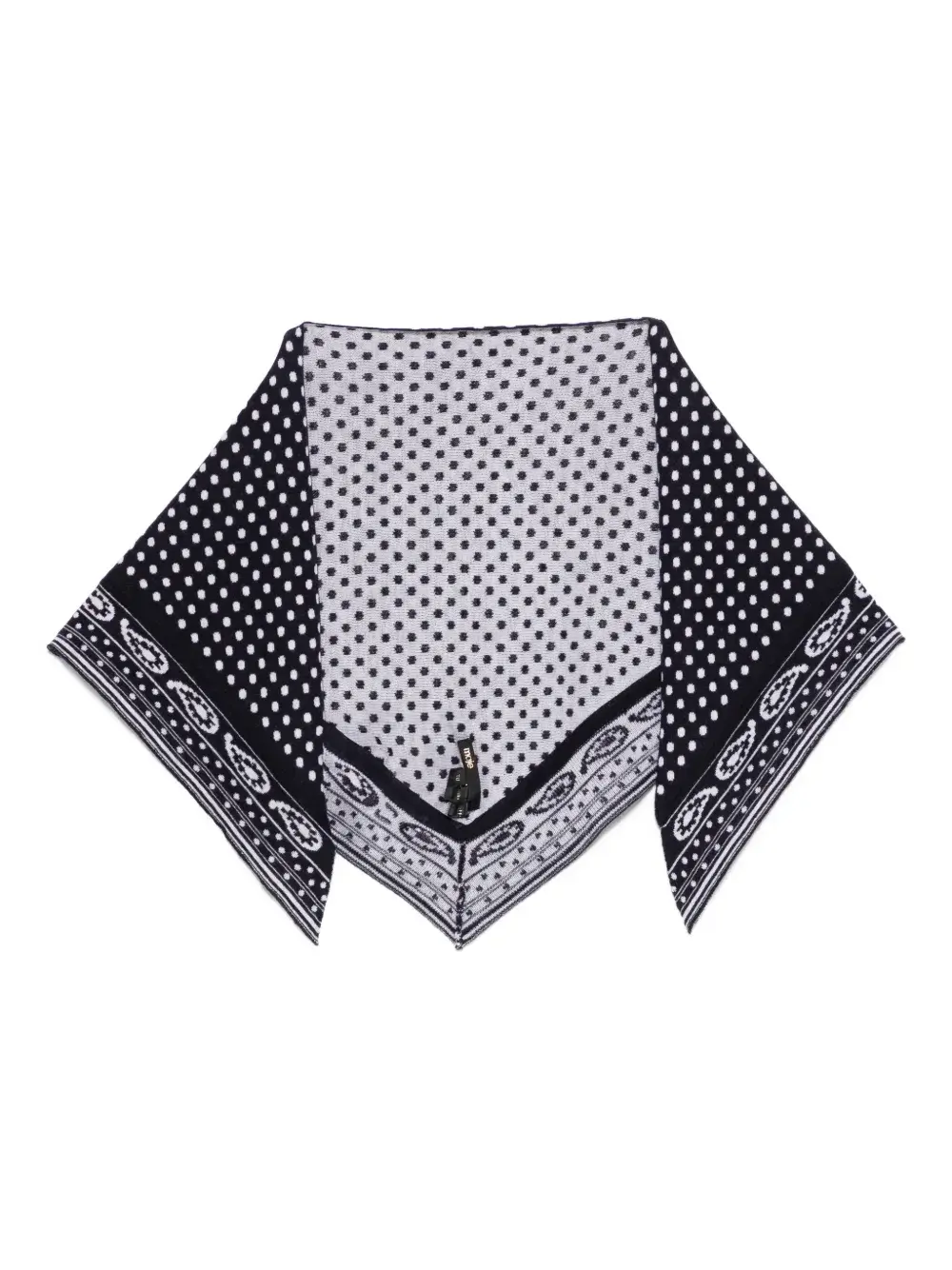 Темно-синий и белый шарф треугольной формы из смеси шерсти и кашемира с принтом в горох