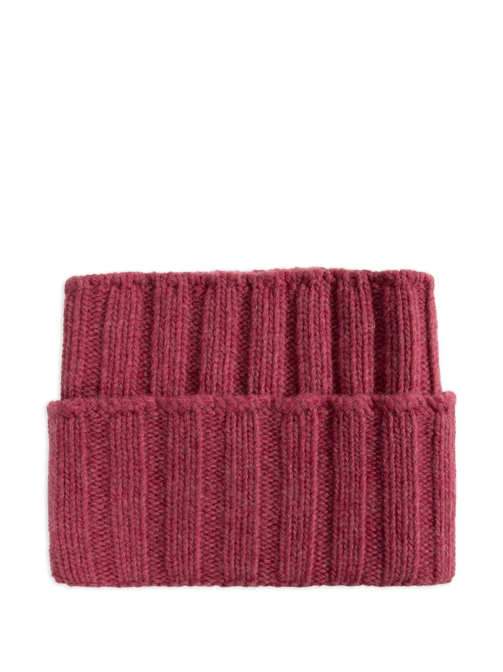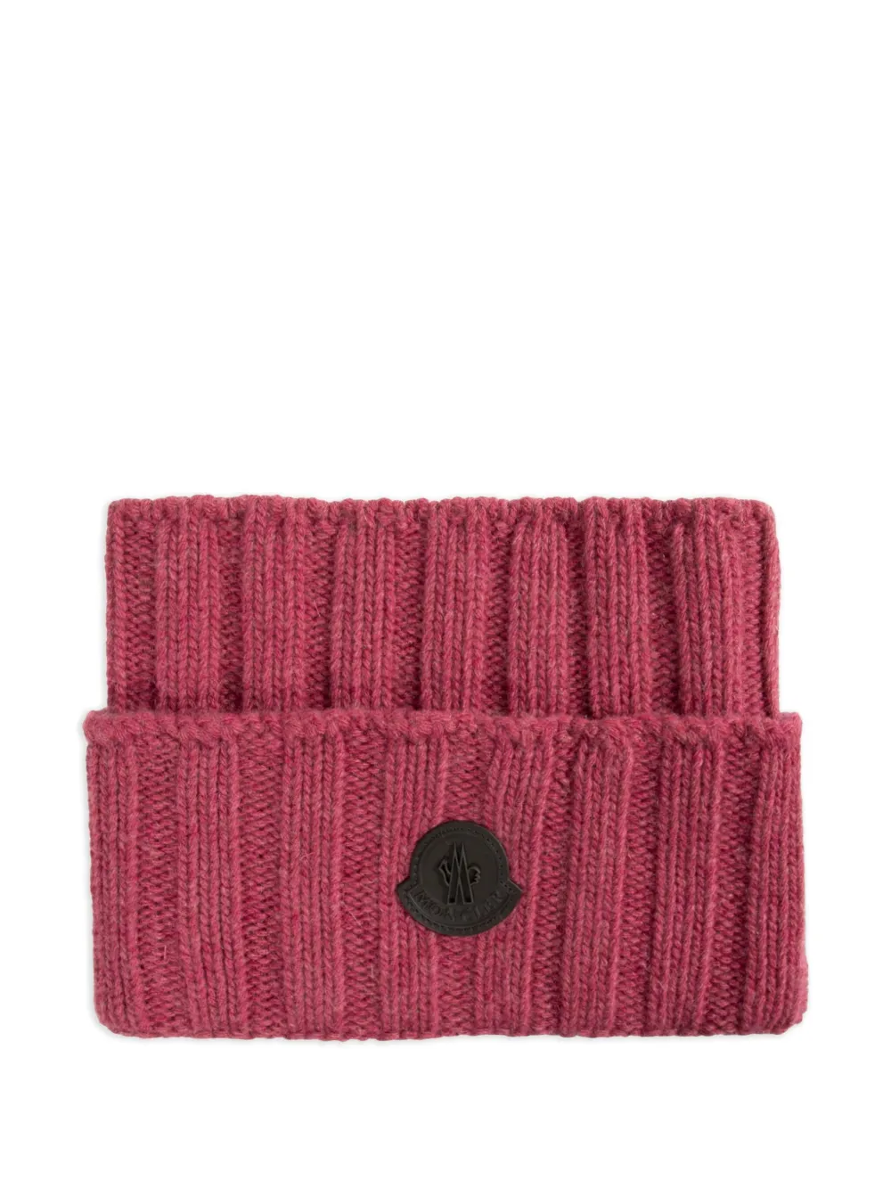 Темно-розовая шерстяная фактурная (в рубчик) шапка с отворотом и нашивкой с логотипом