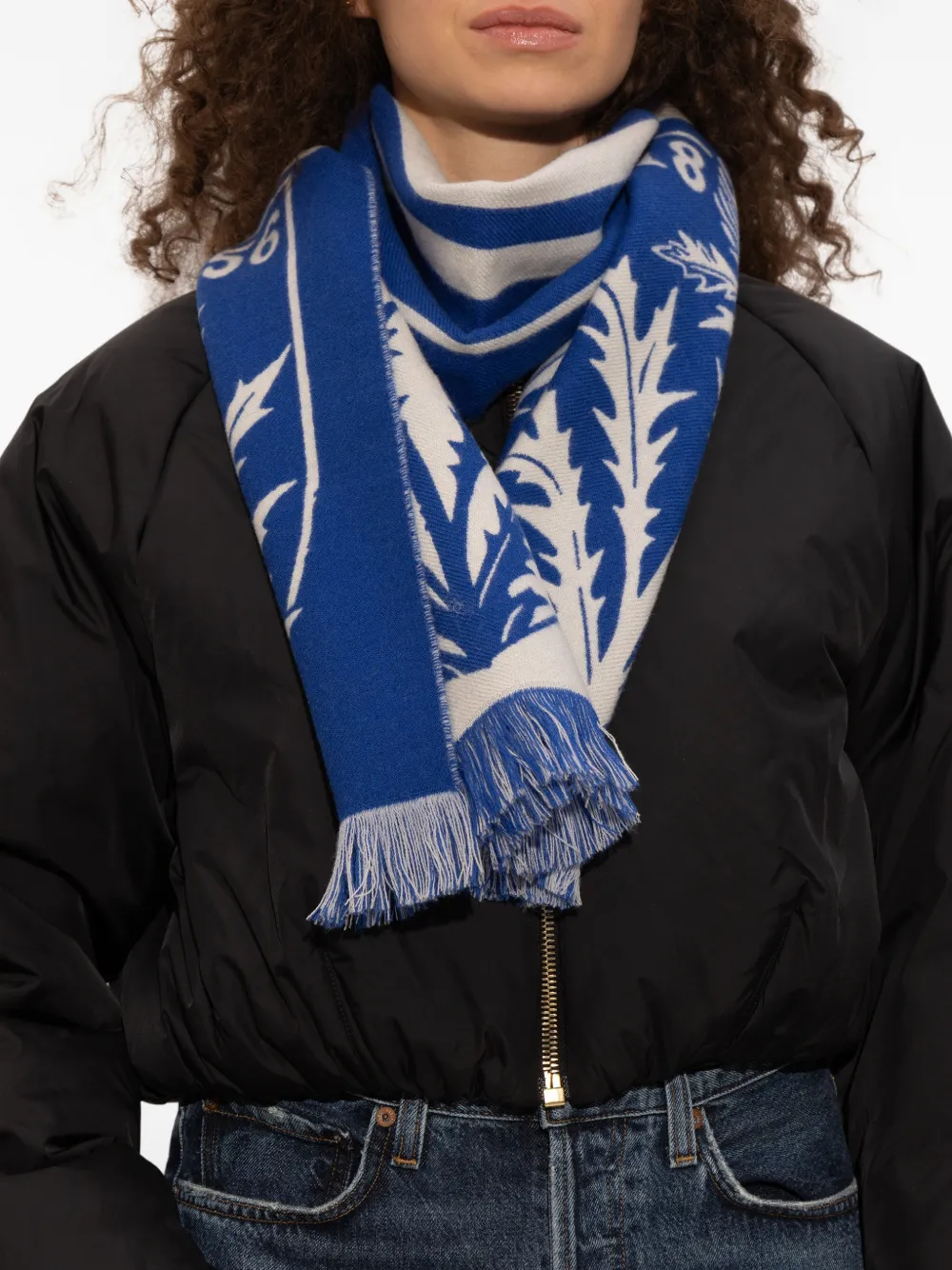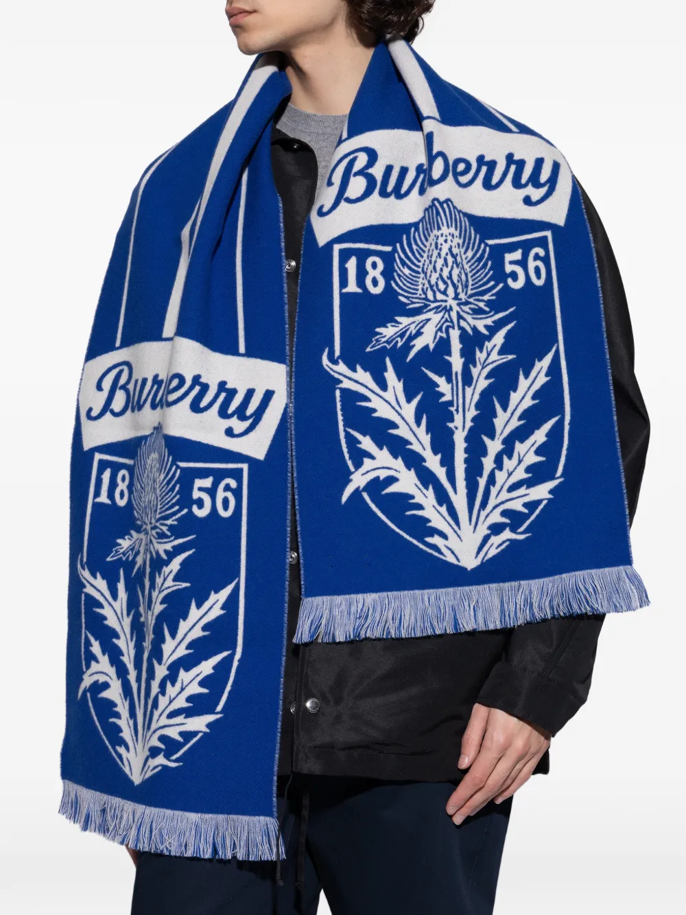 Шарф с бахромой цвета чертополох Burberry, синий