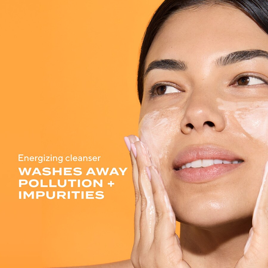 Что это:Пенящийся гель для умывания с освежающим цитрусовым ароматом и запатентованной технологией витамина С, который смывает загрязнения, делая кожу более сияющей.