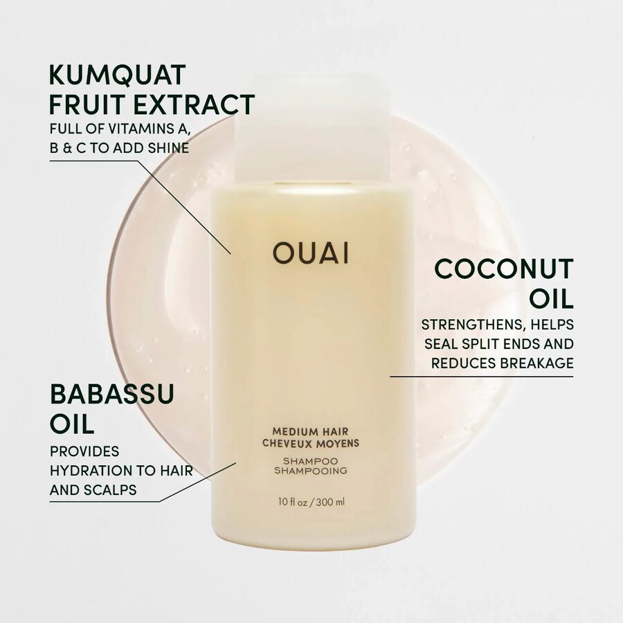 Что еще нужно знать: Этот шампунь для волос средней толщины очищает, укрепляет, возвращает блеск и устраняет пушистость. Вымойте волосы шампунем OUAI, чтобы они стали оптимальным вариантом, восстановились и напитались, а аромат Mercer Street, роскошного парфюма с нотами итальянского лимона, жасмина и белого мускуса, подарит им восхитительный запах.
