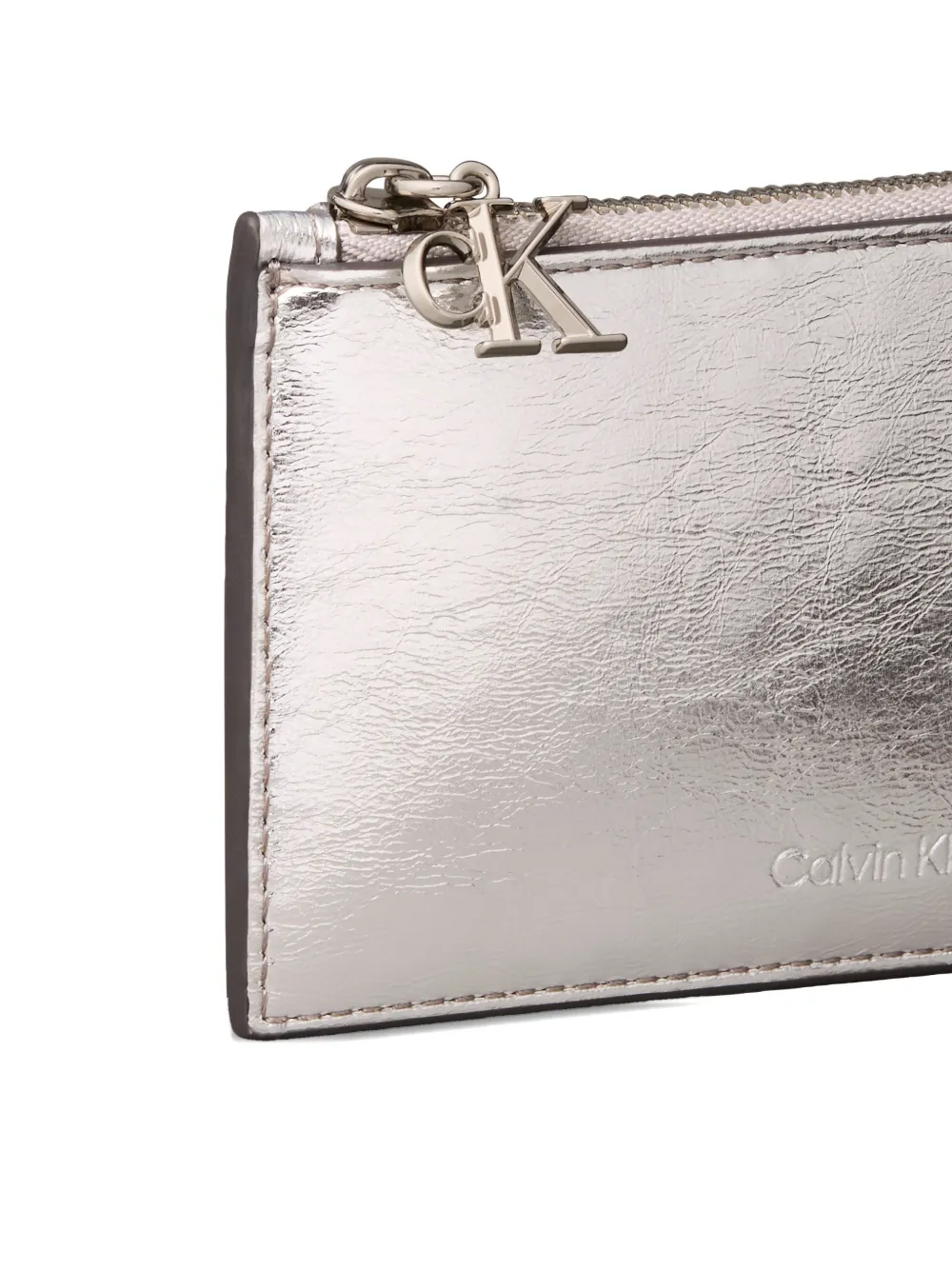 Кошелек на молнии с монограммой-логотипом Calvin Klein, серебристый