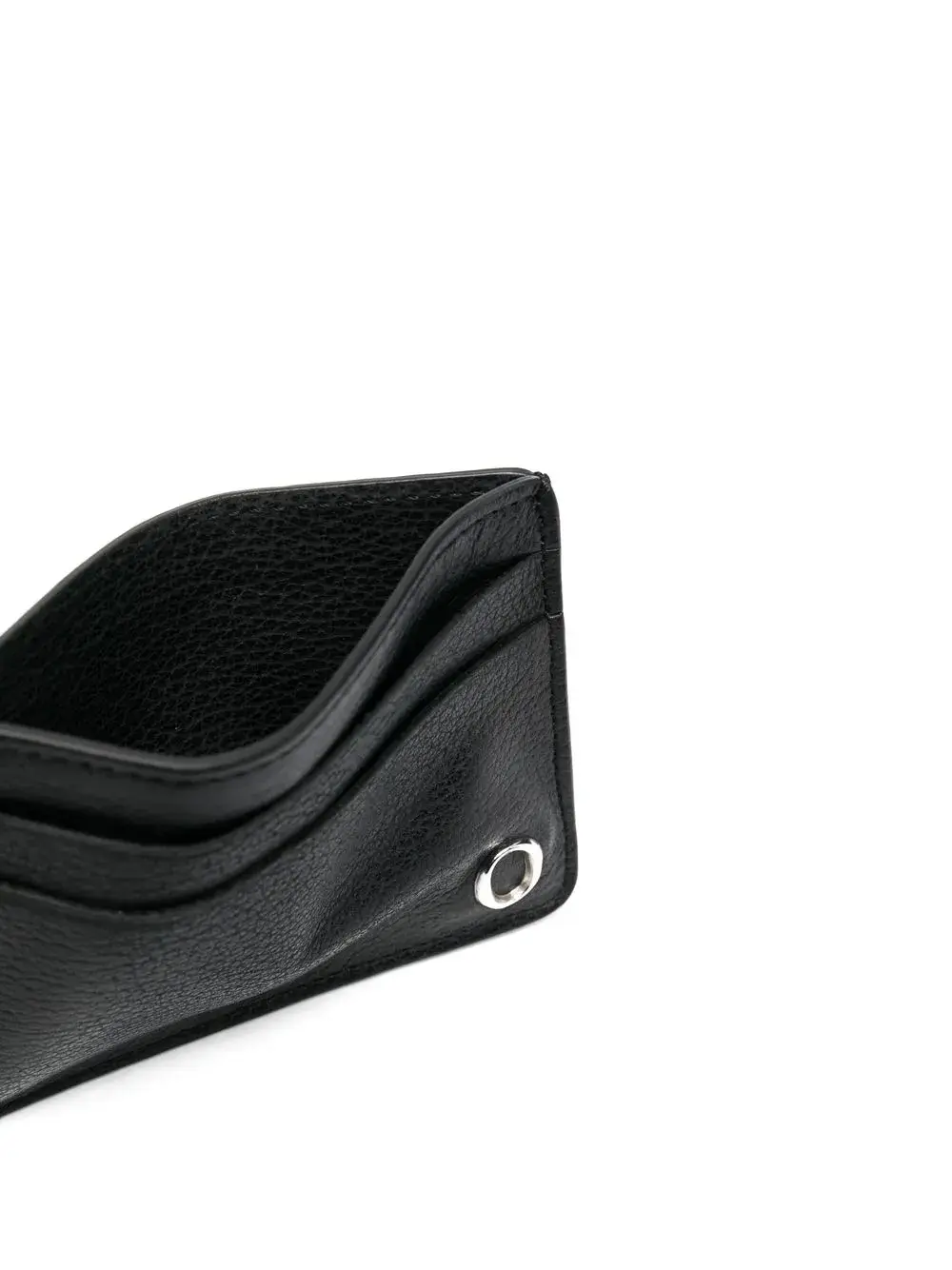 Черный, телячья кожа, зернистая текстура, серебристый металлический логотип, тисненый логотип сзади и отделения для карт.