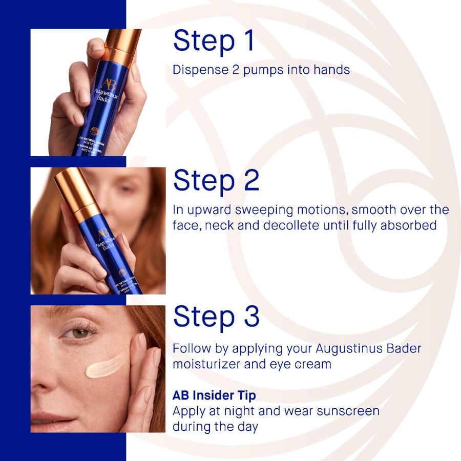 -После очищения и подготовки кожи аккуратно нанесите необходимое количество сыворотки на лицо, шею и область декольте.