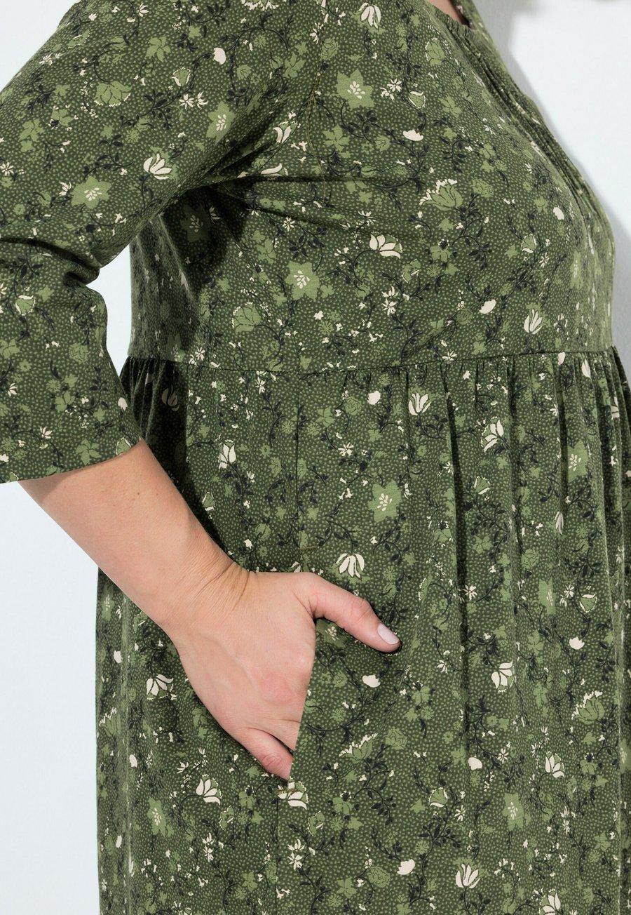 Платье Ulla Popken TWISTING FLORAL EMPIRE, Olive Grey/Olive