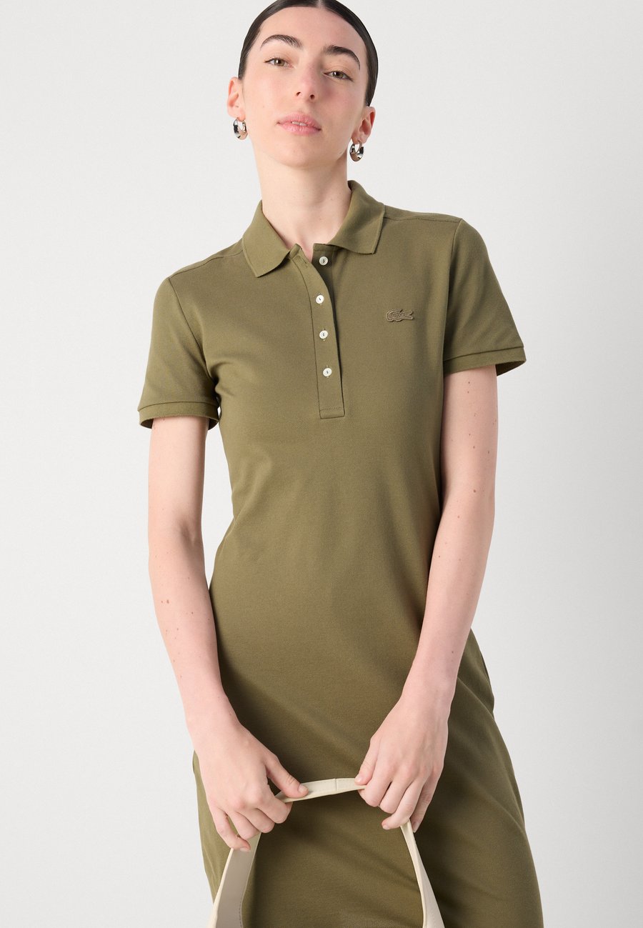 Lacoste представила женское платье-поло в 1969 году. Эта приталенная модель выполнена из более тонкого материала нашего культового трикотажа пике и имеет фирменный воротник. Вырез: V-образныйМатериал и уход