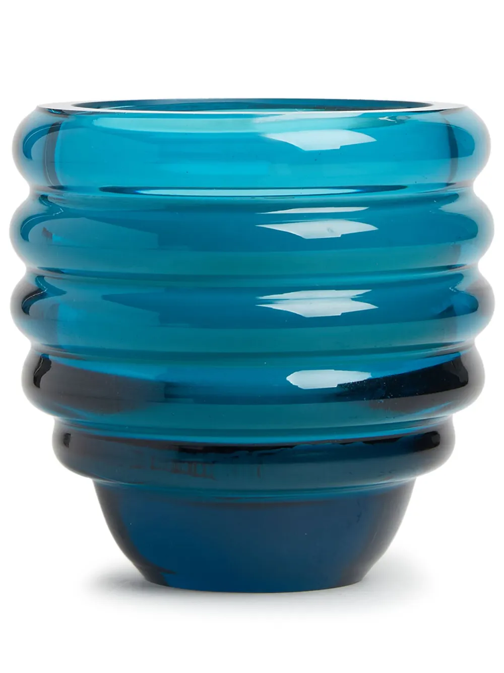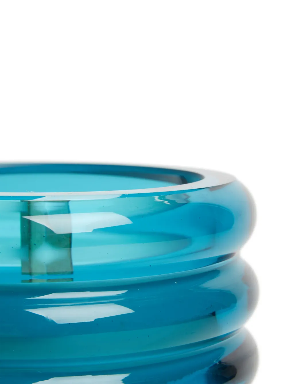 Аквамарин, стекло, соевый воск, прозрачный материал и один деревянный фитиль.