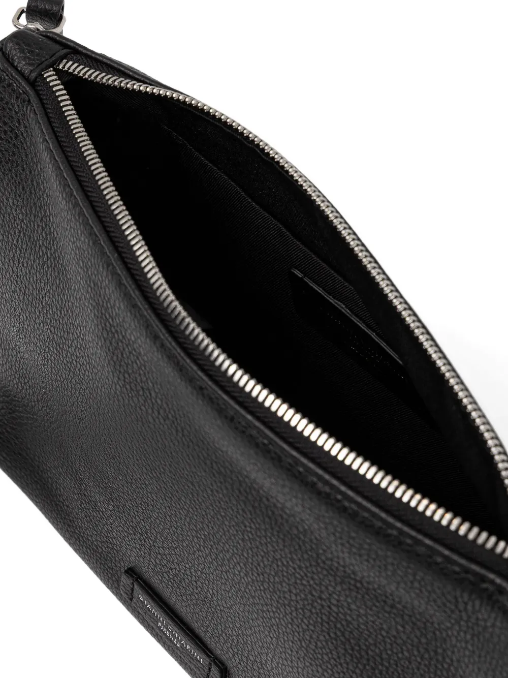 Черный съемный регулируемый плечевой ремень, застежка-молния сверху, внутренний накладной карман, зернистая текстура, нашивка с логотипом