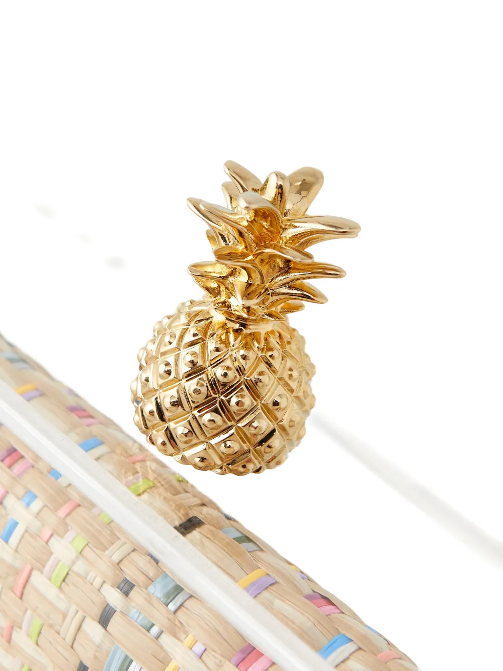 Бежевый рафия, ананасовый декор, прямоугольная форма, застежка-защелка