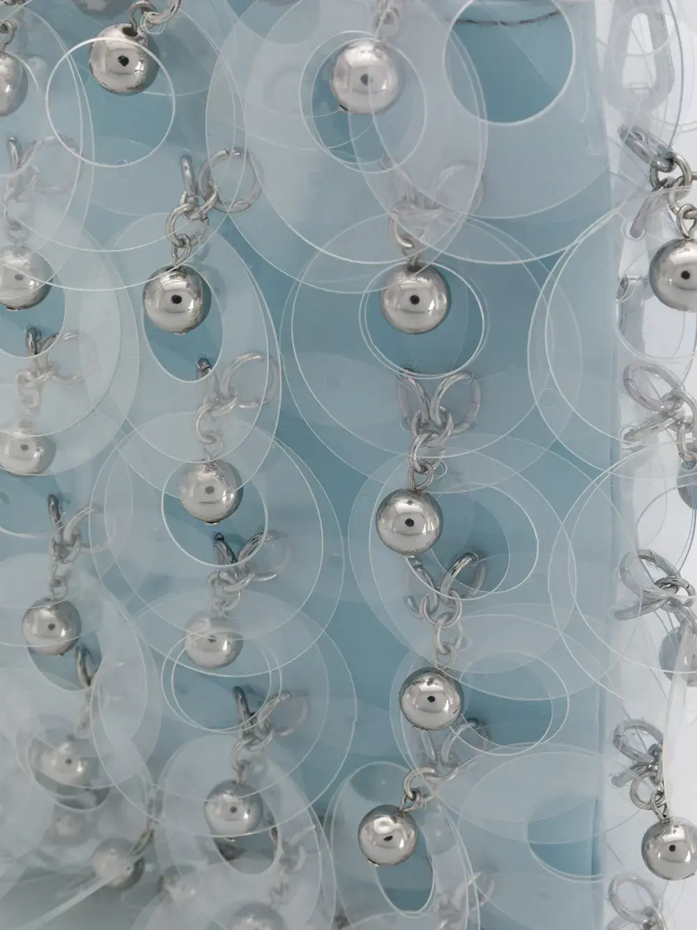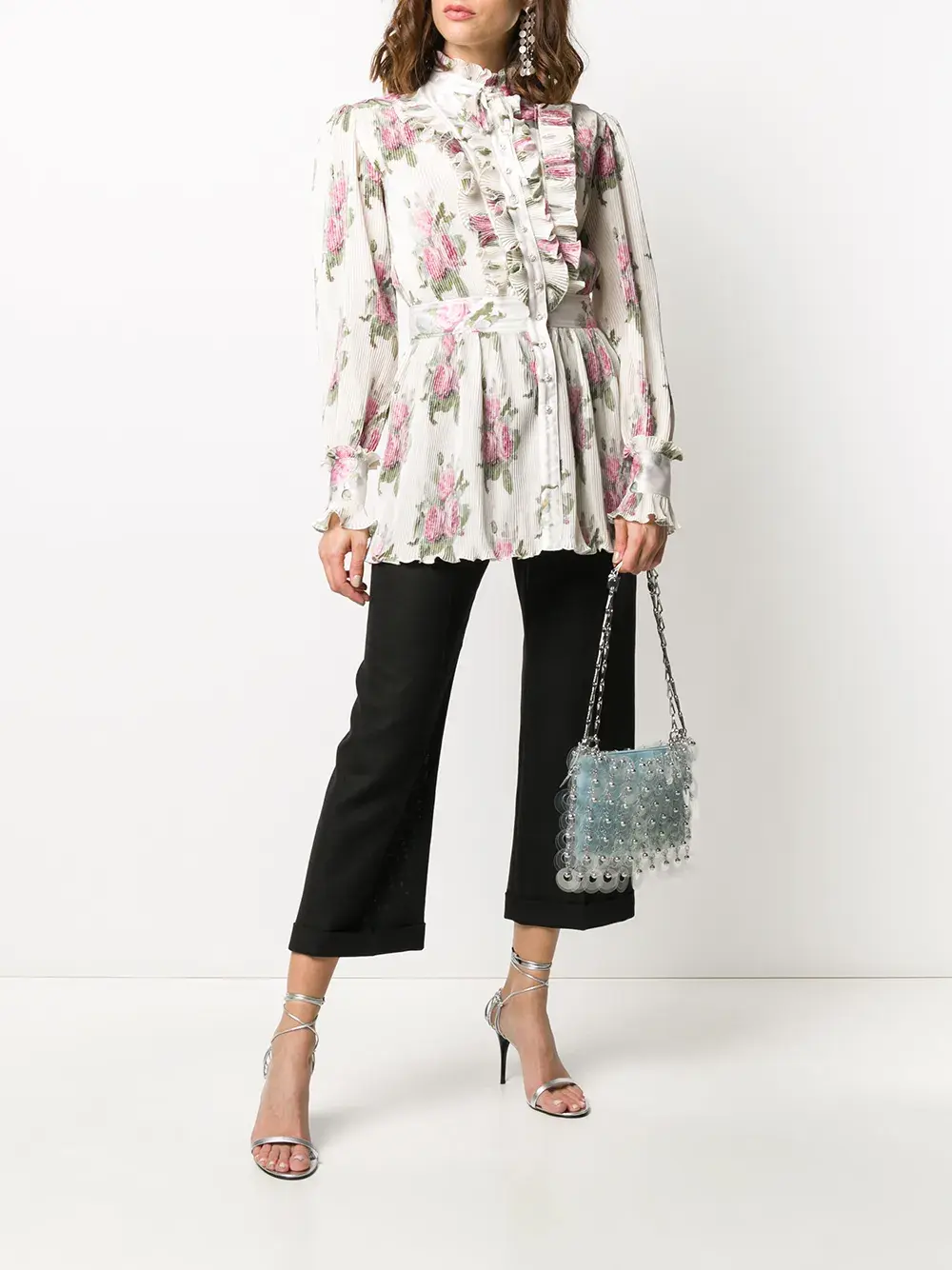 Серебристая фурнитура, прямоугольная форма, магнитная застежка, основное отделение, внутренний накладной карман и ремешок-цепочка на плечо.