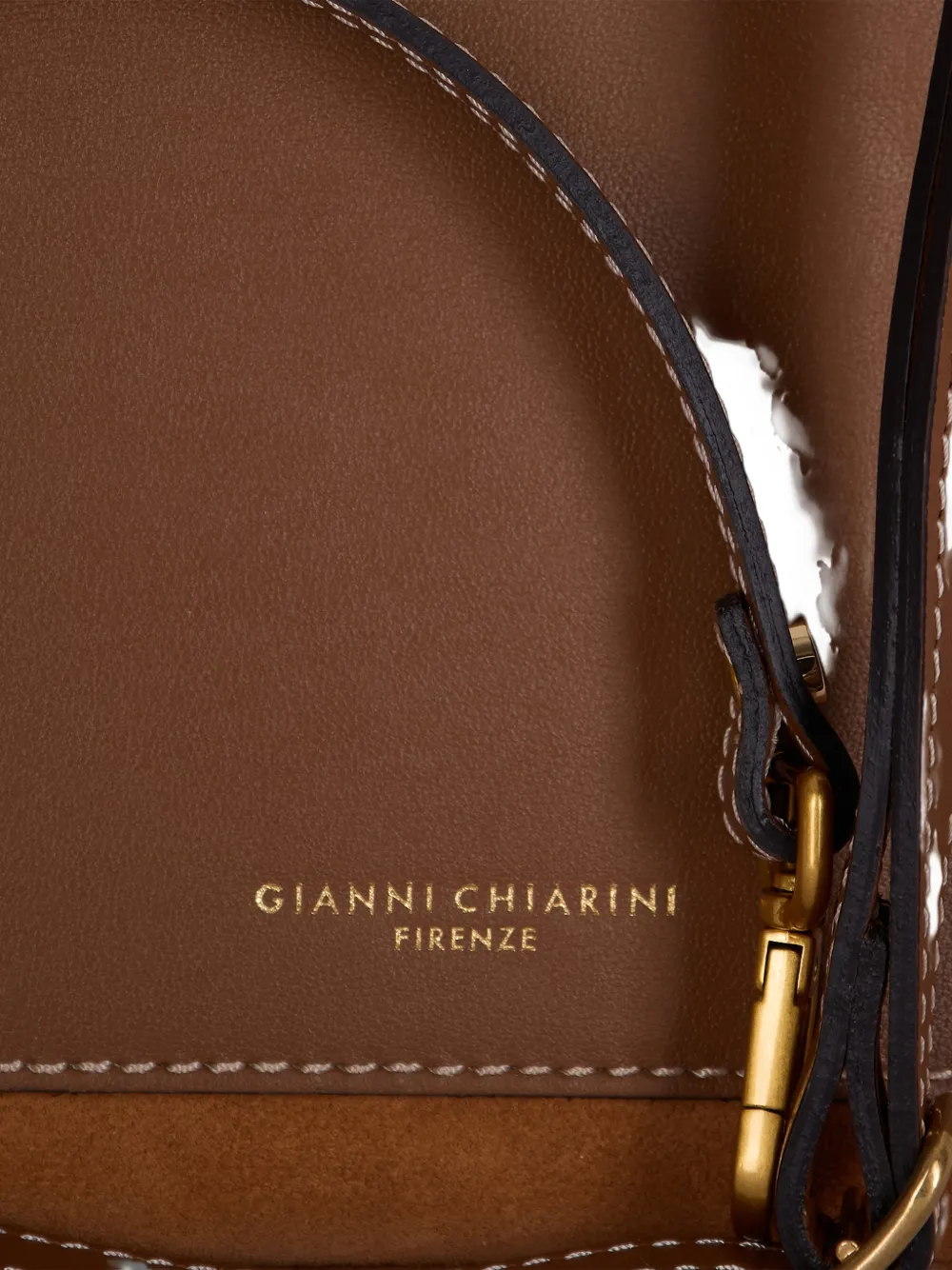 Коричневый цвет, фурнитура золотистого оттенка, клапан сверху, тональная строчка, регулируемый плечевой ремень