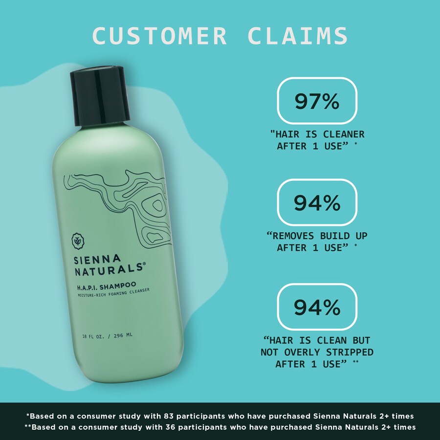 - 94% сказали, что их волосы стали чистыми, но не слишком пересушенными после однократного использования шампуня HAPI.