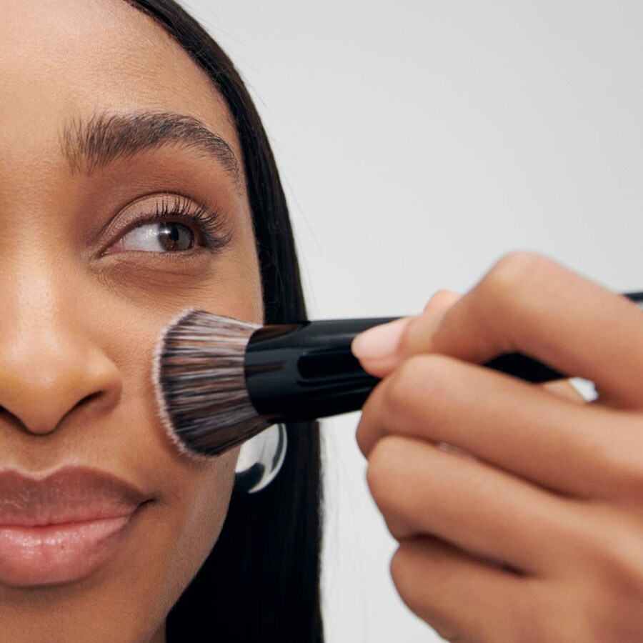 - Используйте короткими размашистыми движениями по всему лицу для растушевки.