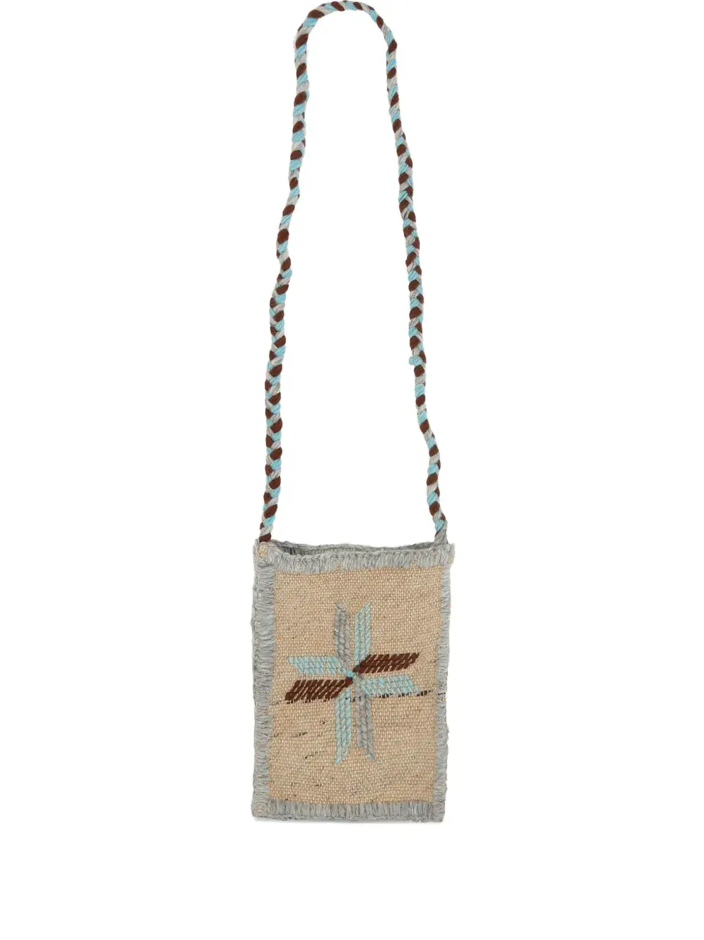 Бежевый плетёный шерстяной наплечный ремень с вышивкой