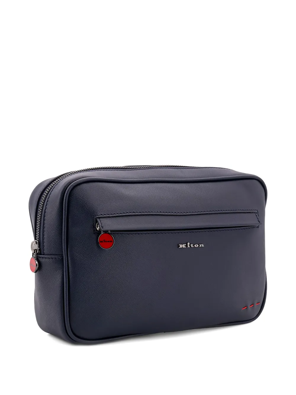 Синий топ, застежка-молния, передний карман на молнии, ремешок на запястье, логотипная табличка, красная отделка
