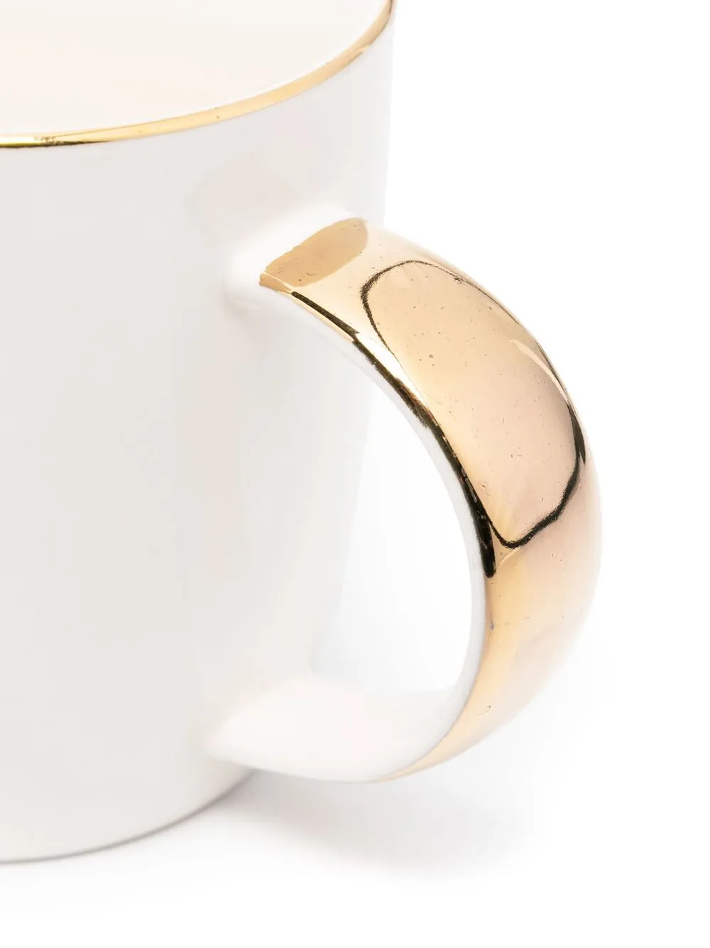 Белый, золотистый, керамика, глазурованное покрытие, текстовый принт, покрытие с эффектом металлик, круглая ручка и подходит для мытья в посудомоечной машине.