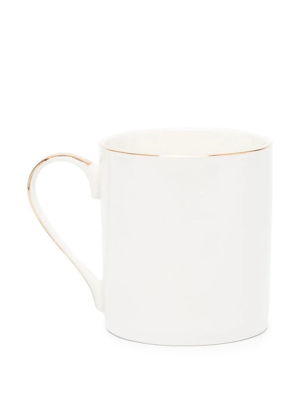 Белый, золотистый, керамика, глазурованное покрытие, текстовый принт, покрытие с эффектом металлик, круглая ручка и подходит для мытья в посудомоечной машине.