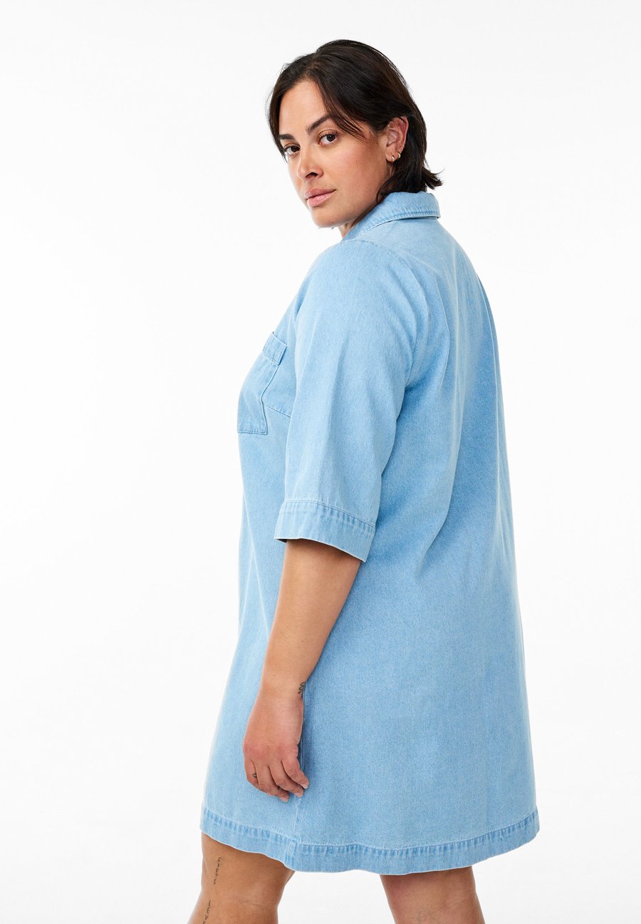 Платье Zizzi MIT KRAGEN UND V-AUSSCHNITT, Light Blue Denim/Light-Blue Denim