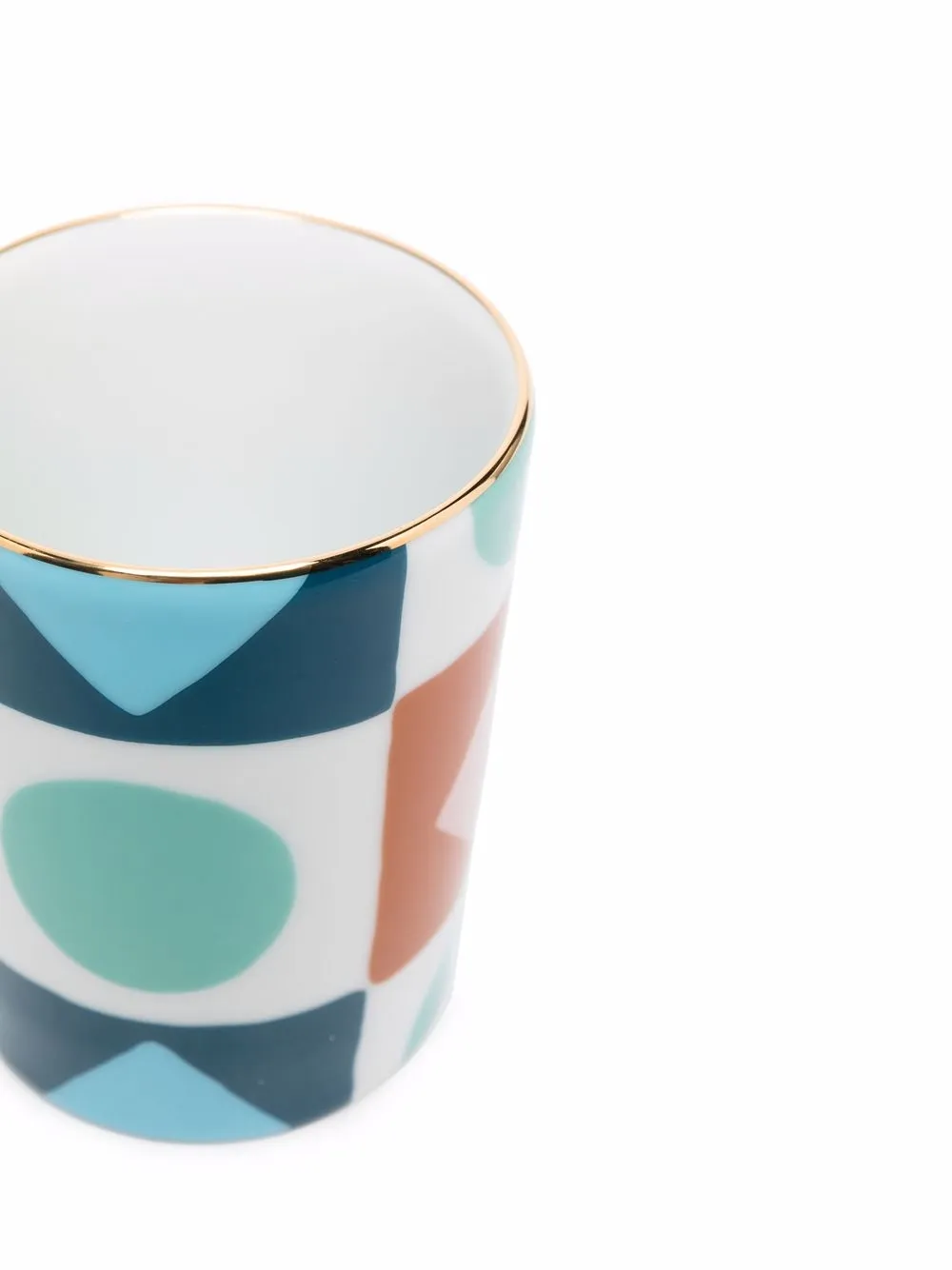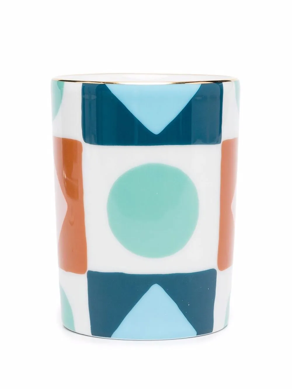 Сплошной графичный принт и золотистая отделка.