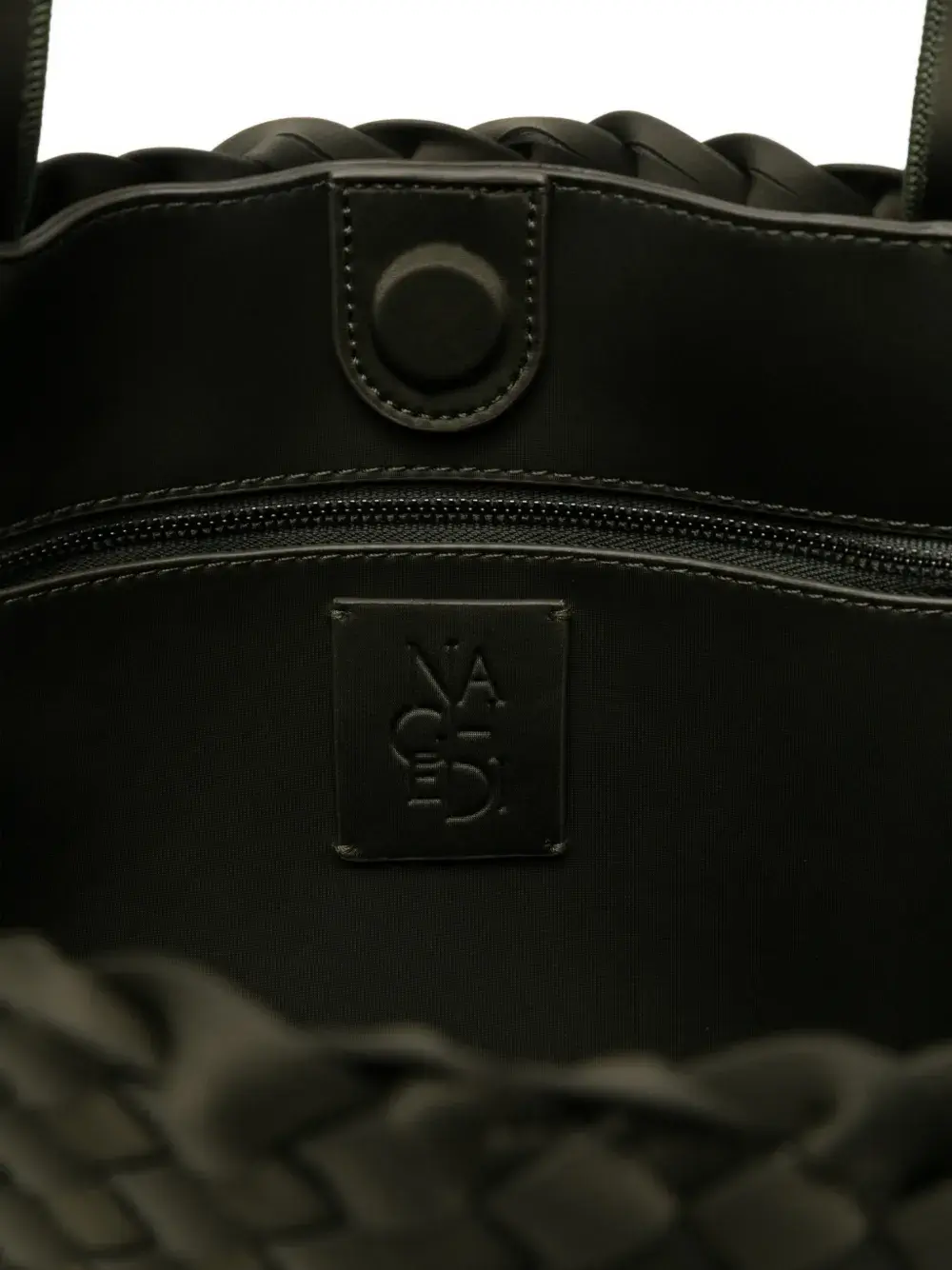 Оливковая сумка с плетёным дизайном, верхней ручкой, внутренним карманом на молнии. В комплекте идет защитный чехол.