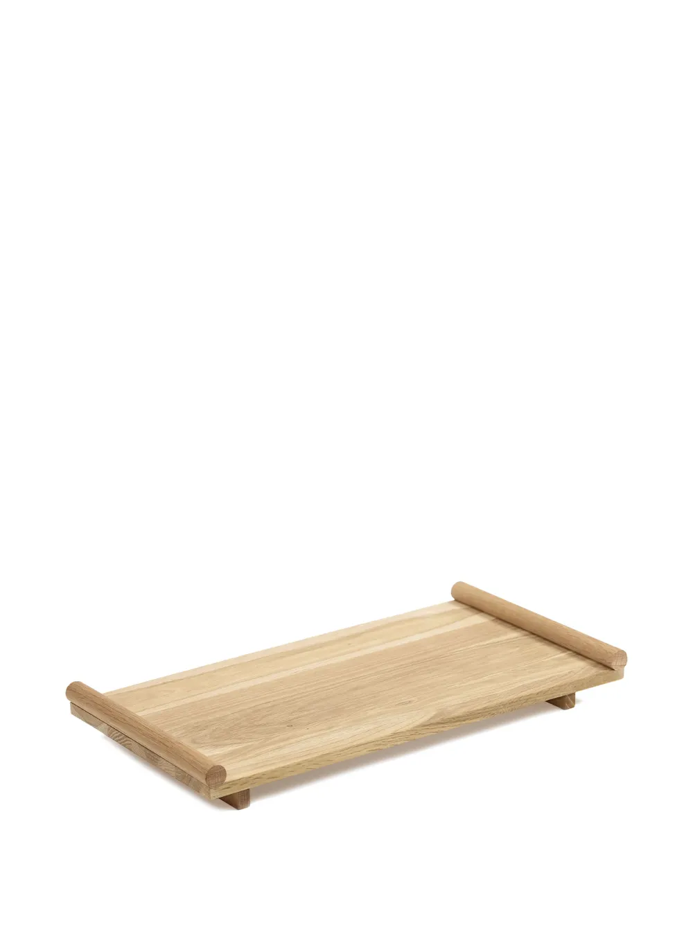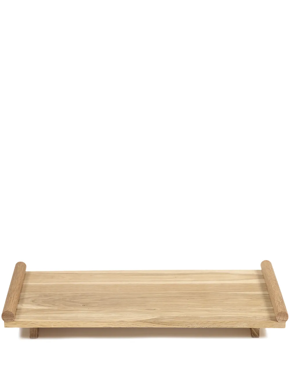 Бежевый, прямоугольная форма и две закругленные ручки по бокам.