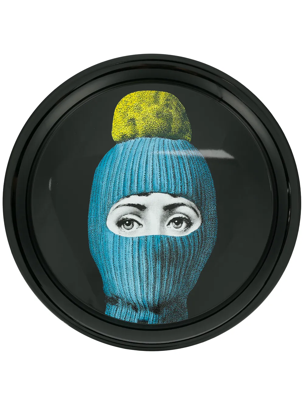 Поднос Lux Gstaad от Fornasetti. Круглая форма и принт спереди.